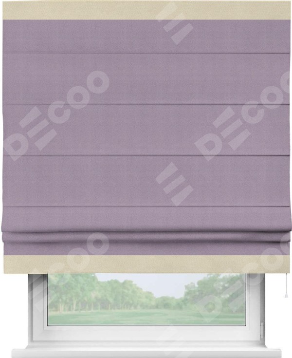 Римская штора «Кортин» с кантом Горизонт, для проема, ткань блэкаут однотонный светло-сиреневый