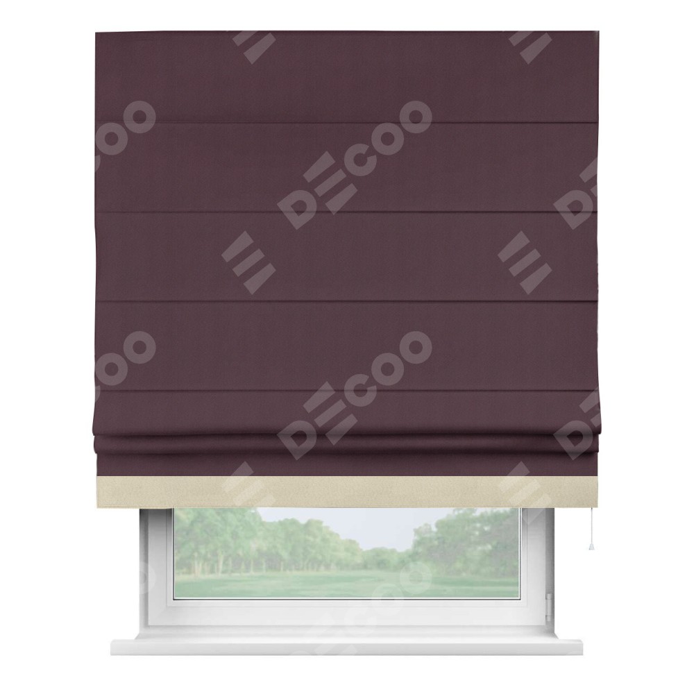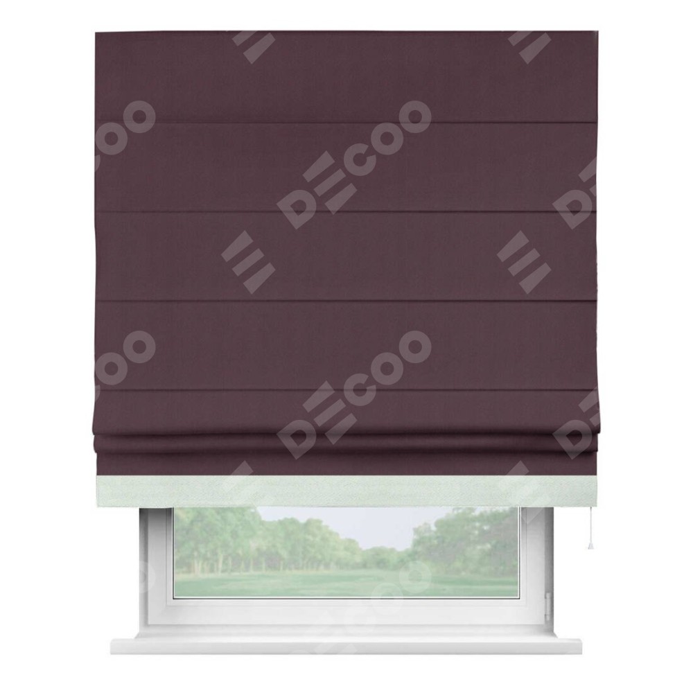 Римская штора производителя «Cortin», используется для проёма, пошита из ткани блэкаут однотонный сиреневый, артикул ткани 29333−2. Отделка шторы кантом «Джестер», ткань для канта используется из блэкаута однотонного разной расцветки на выбор. Имеет универсальный механизм и подходит для монтажа: на потолок, на стену и в нишу.