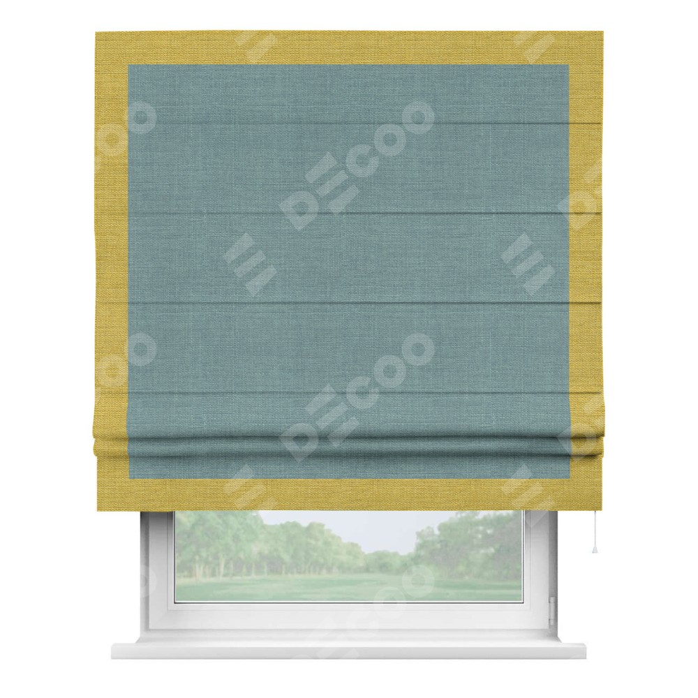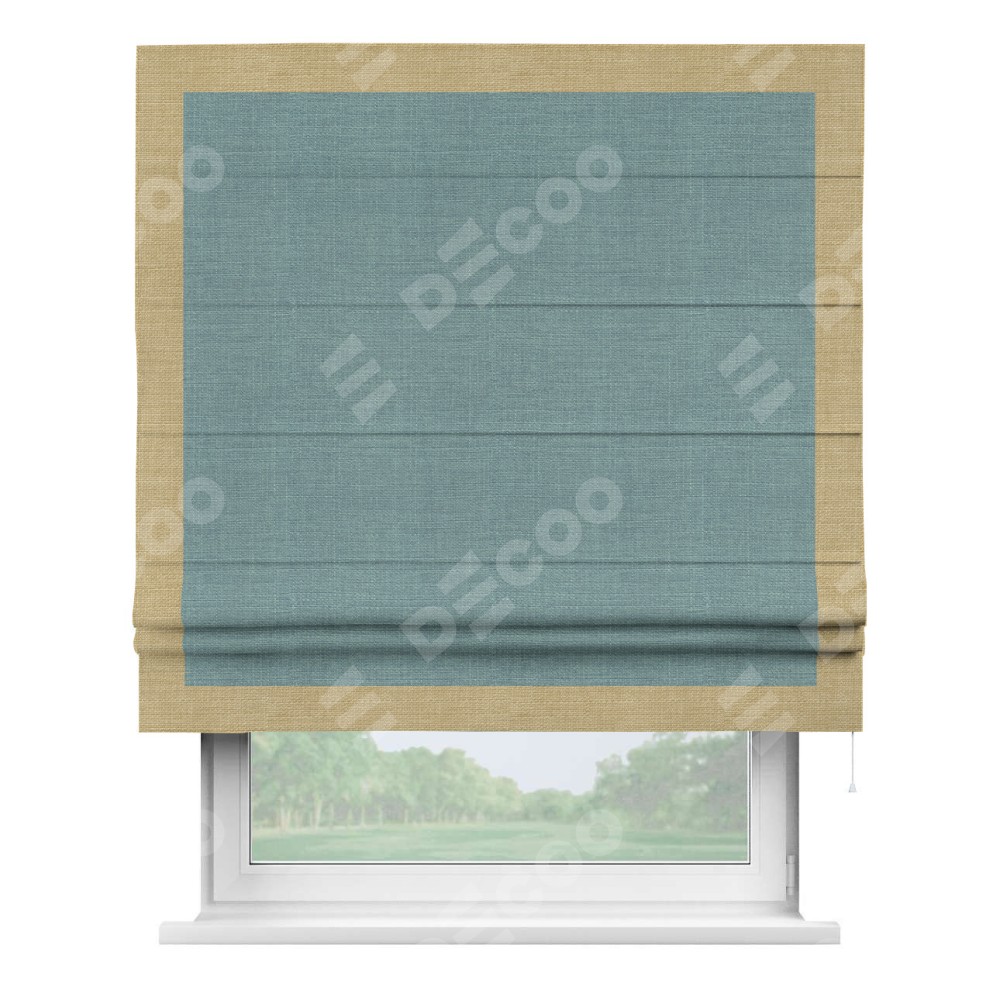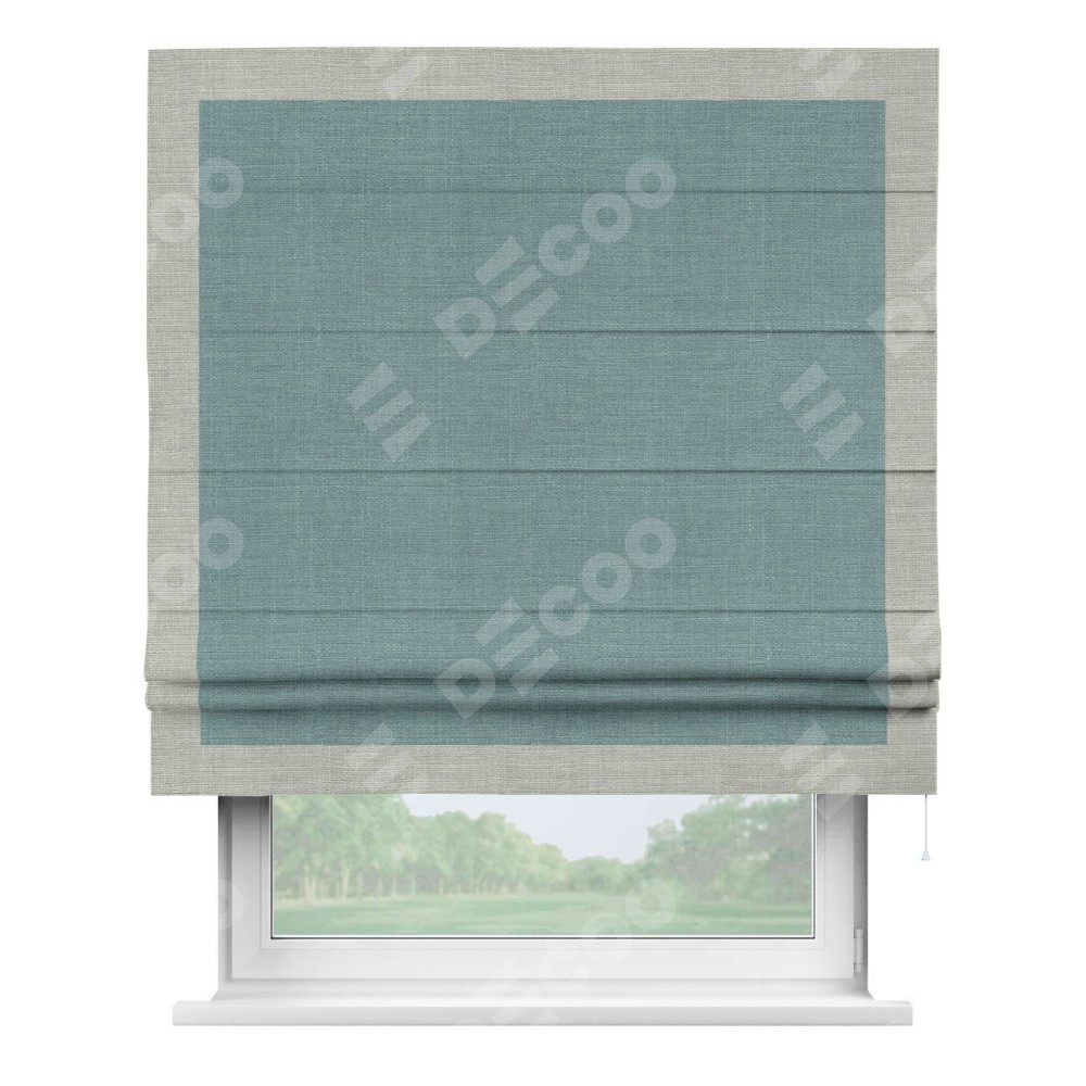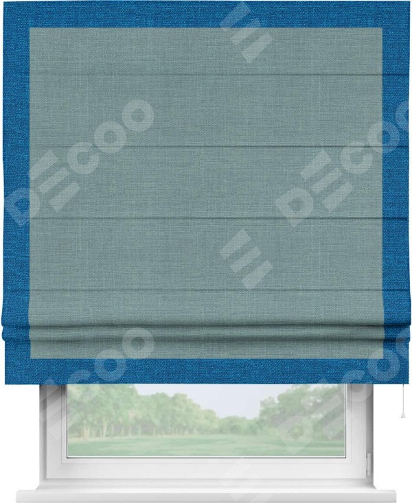 Римская штора «Кортин» с кантом Чесс, для проема, лён, цвет голубой