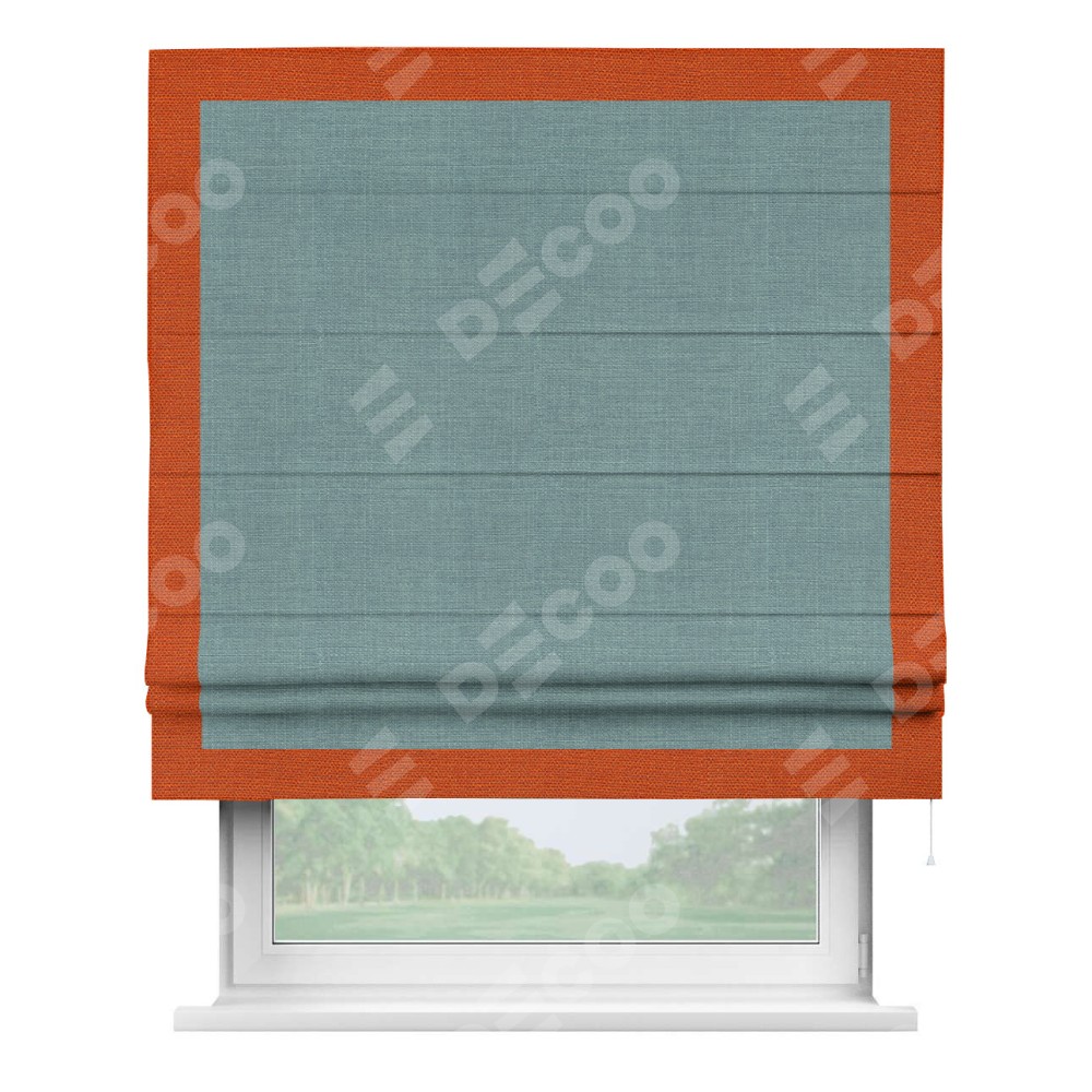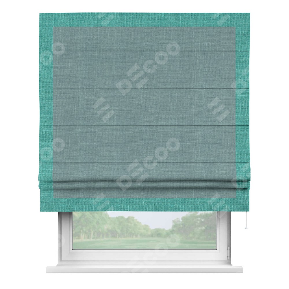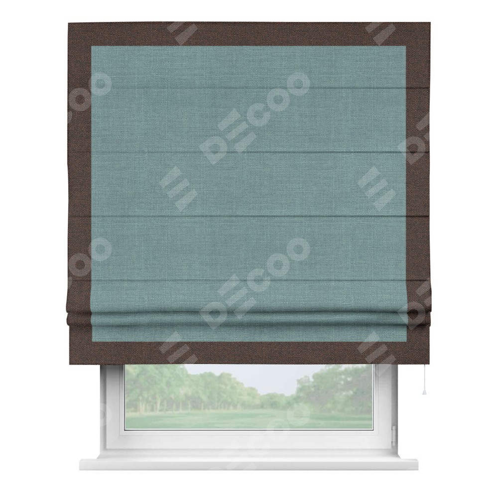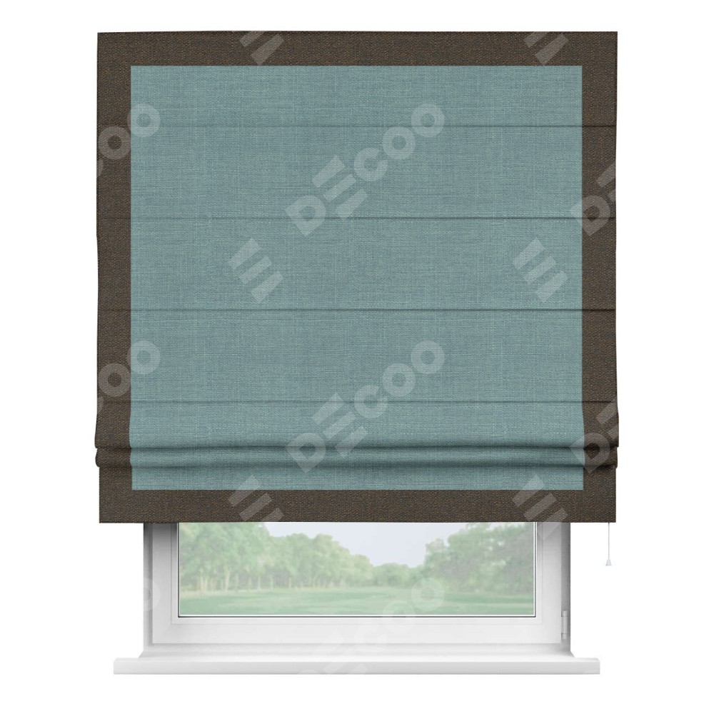 Римская штора «Кортин» с кантом Чесс, для проема, лён, цвет голубой