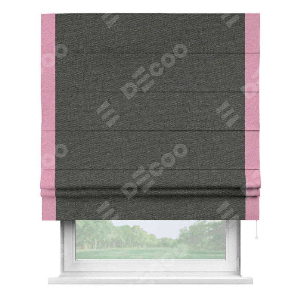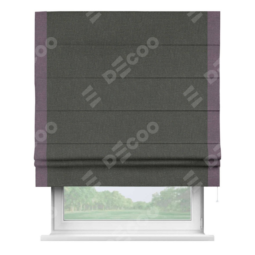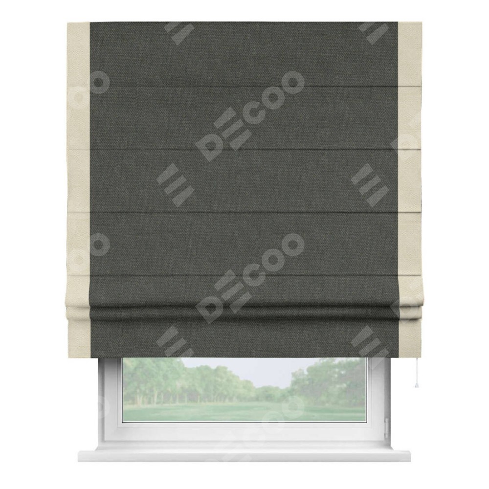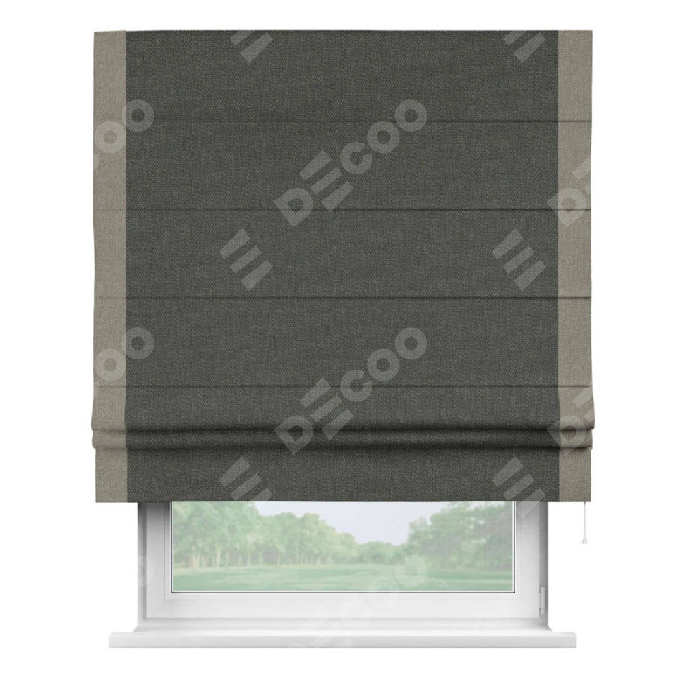 Римская штора «Кортин» с кантом Стрим Дуо, для проема, ткань лён димаут, графитово-серый
