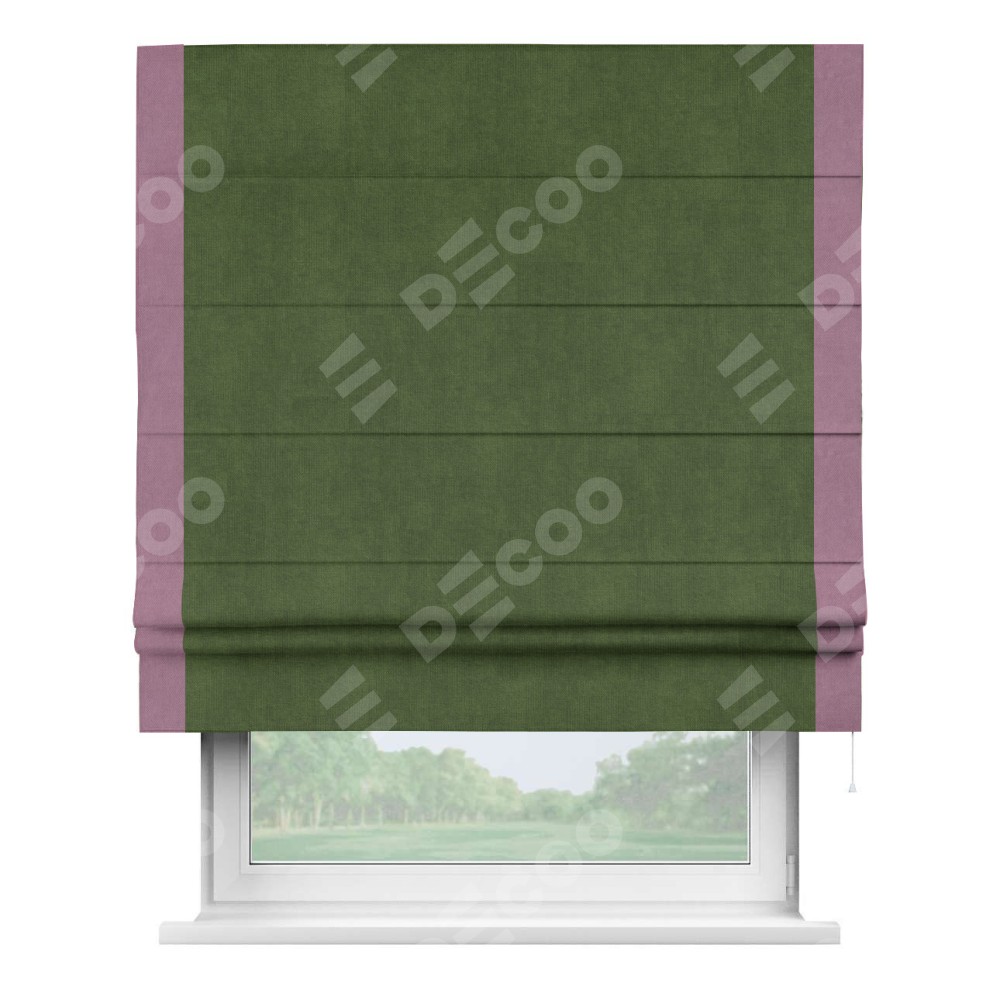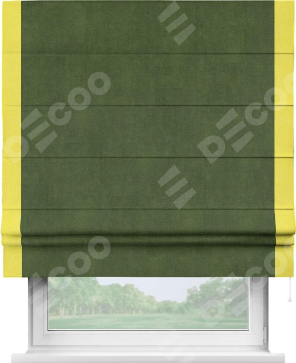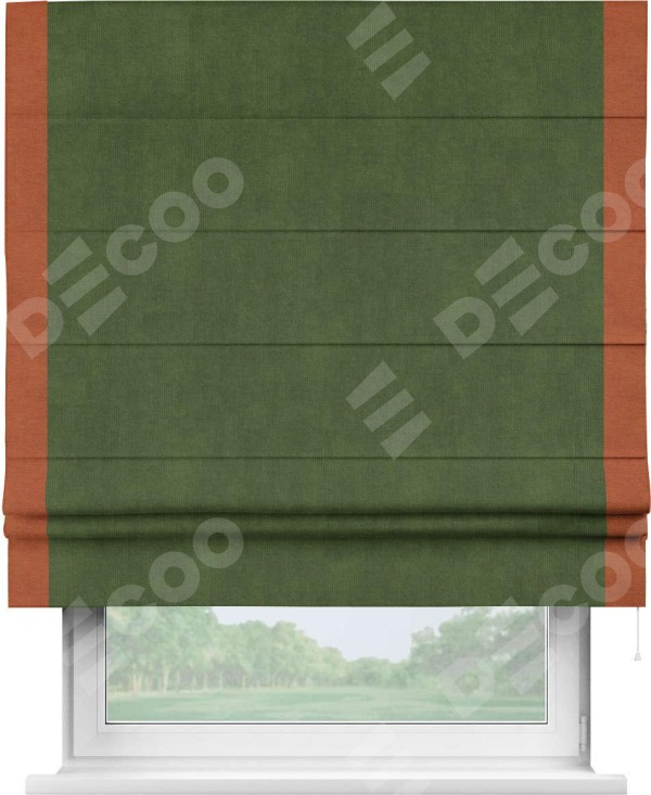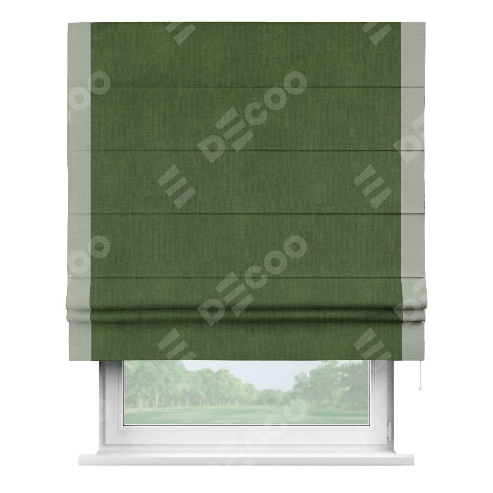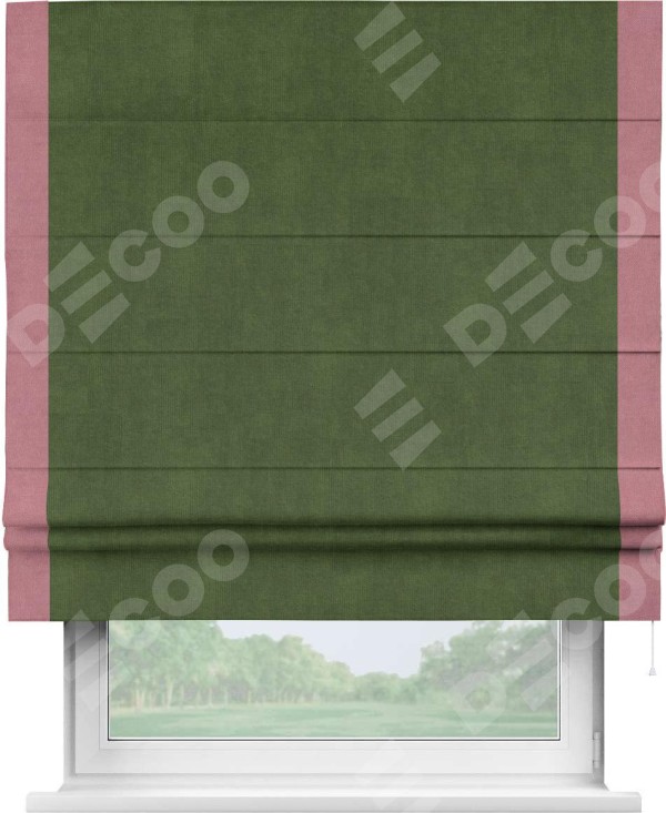 Римская штора «Кортин» с кантом Стрим Дуо, для проема, ткань вельвет тёмно-салатовый