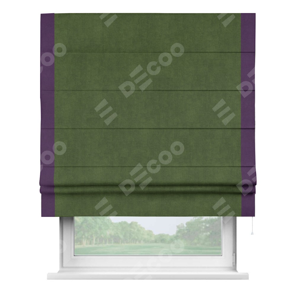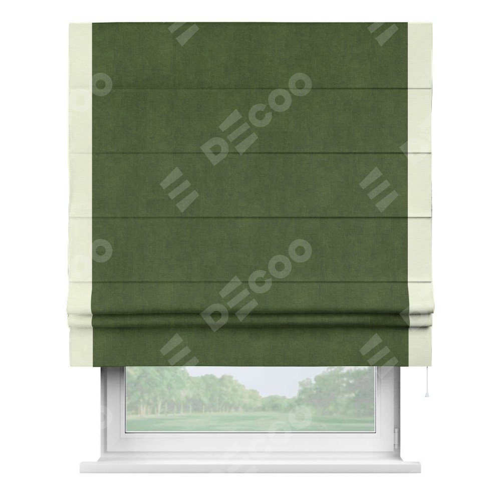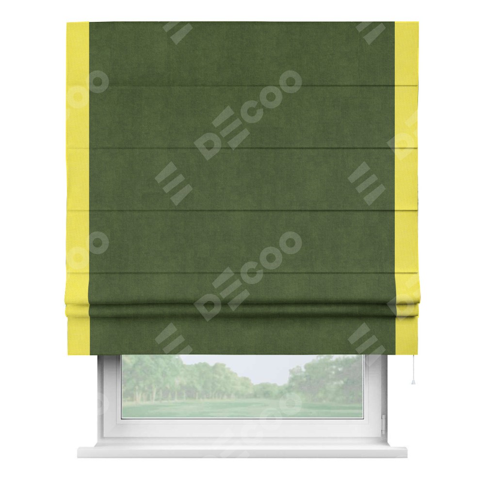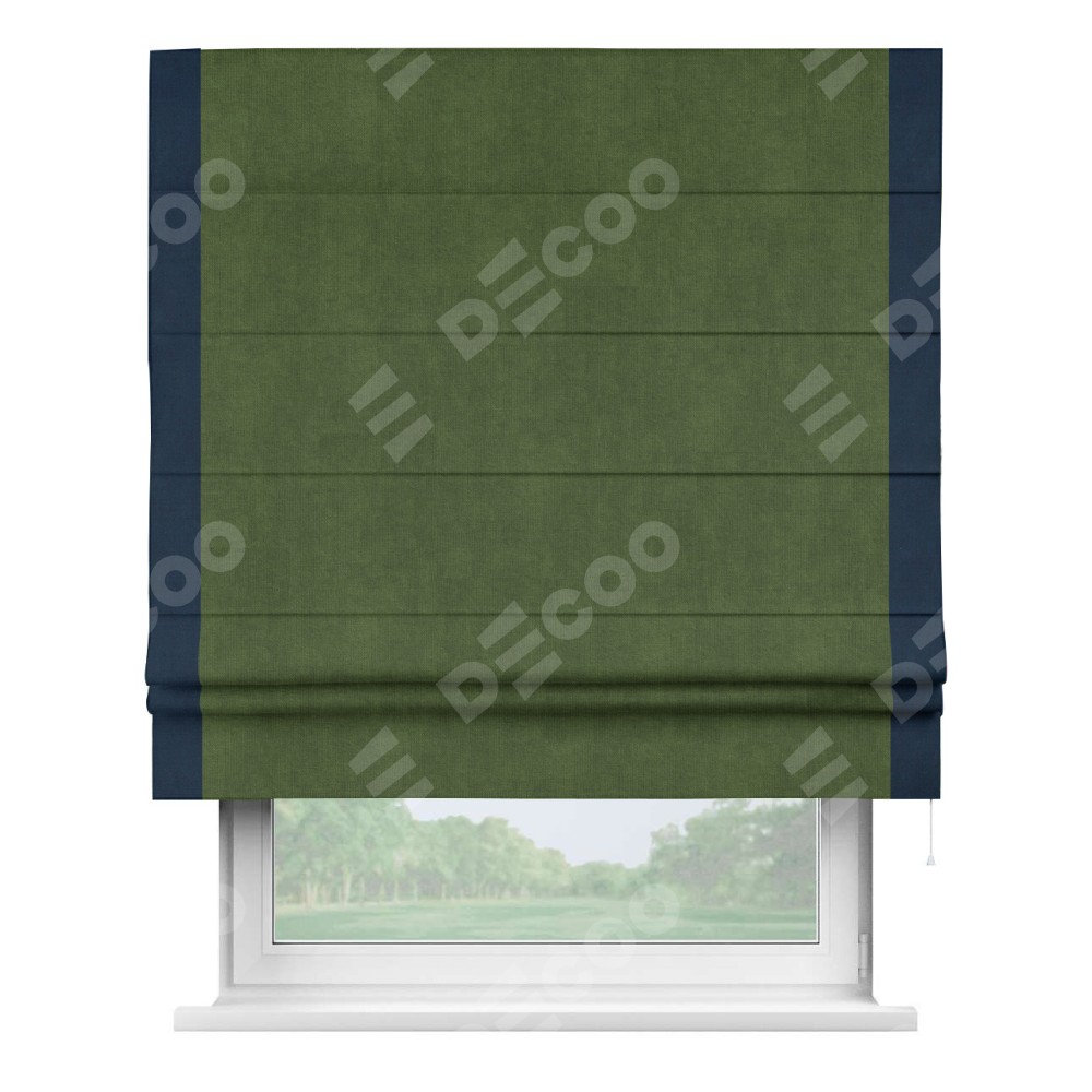 Римская штора «Кортин» с кантом Стрим Дуо, для проема, ткань вельвет тёмно-салатовый