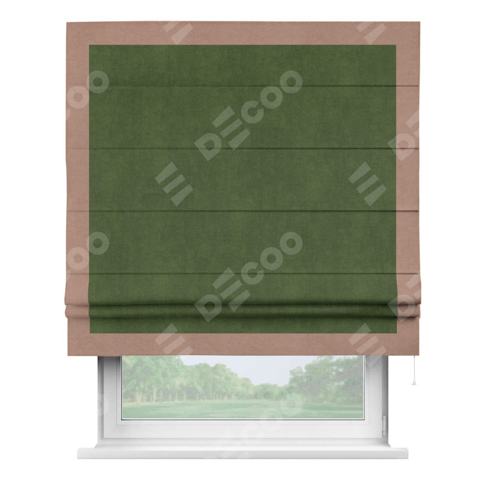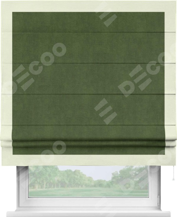 Римская штора «Кортин» с кантом Чесс, для проема, ткань вельвет тёмно-салатовый