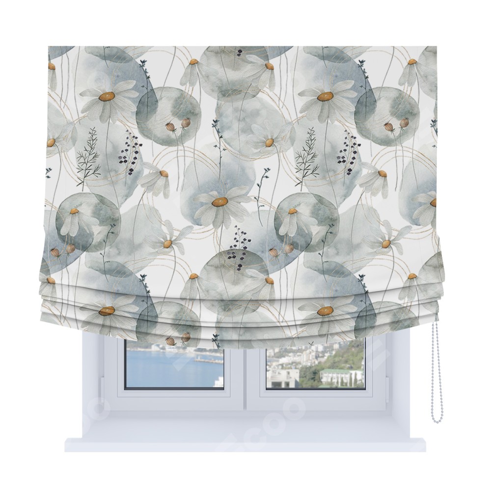 Римская штора Soft с мягкими складками, «Ромашки акварель»