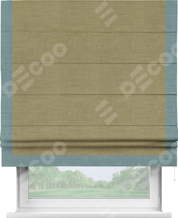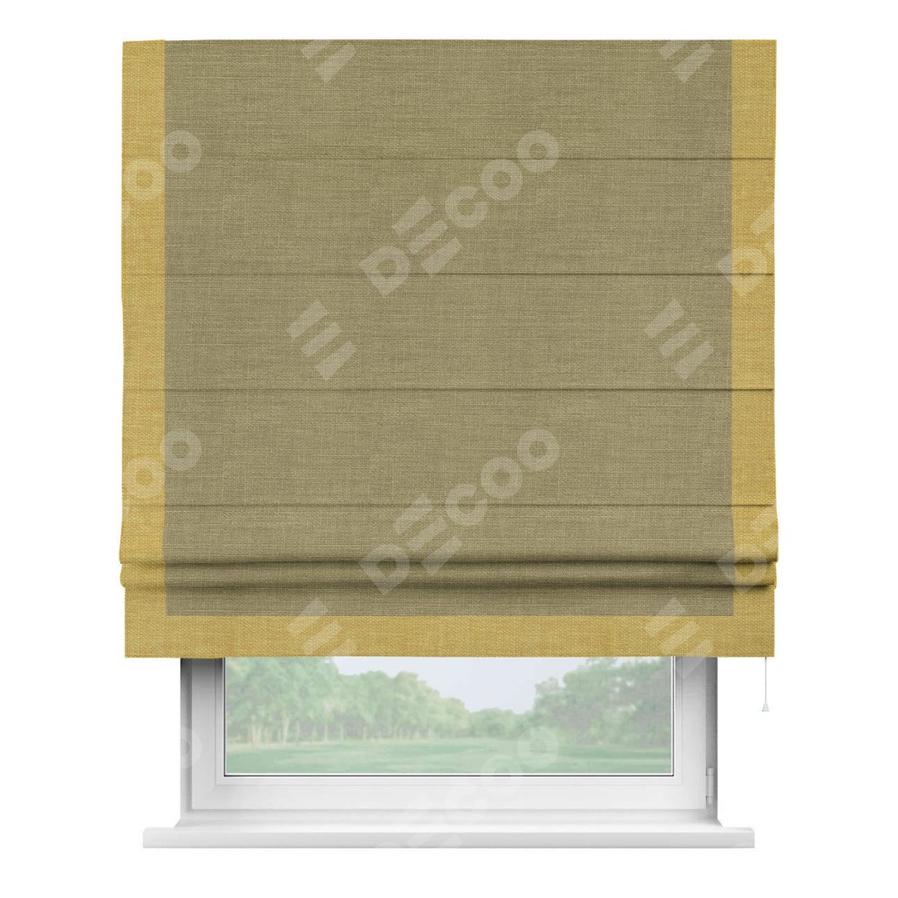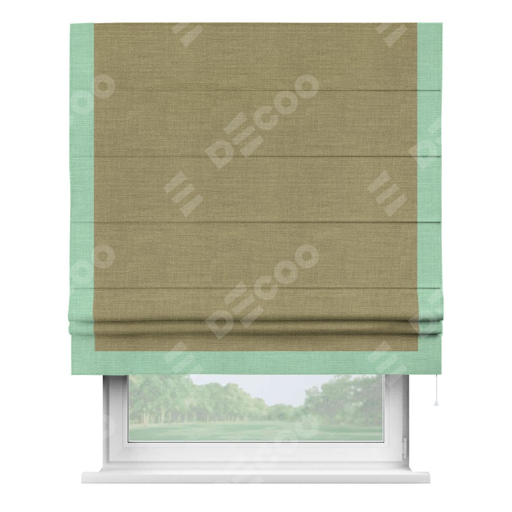 Римская штора производителя «Cortin», используется для проёма, пошита из ткани лён коричневый, артикул 7443. Отделка шторы кантом «Виктория», ткань для канта используется из льна разной расцветки на выбор. Имеет универсальный механизм и подходит для монтажа: на потолок, на стену и в нишу.