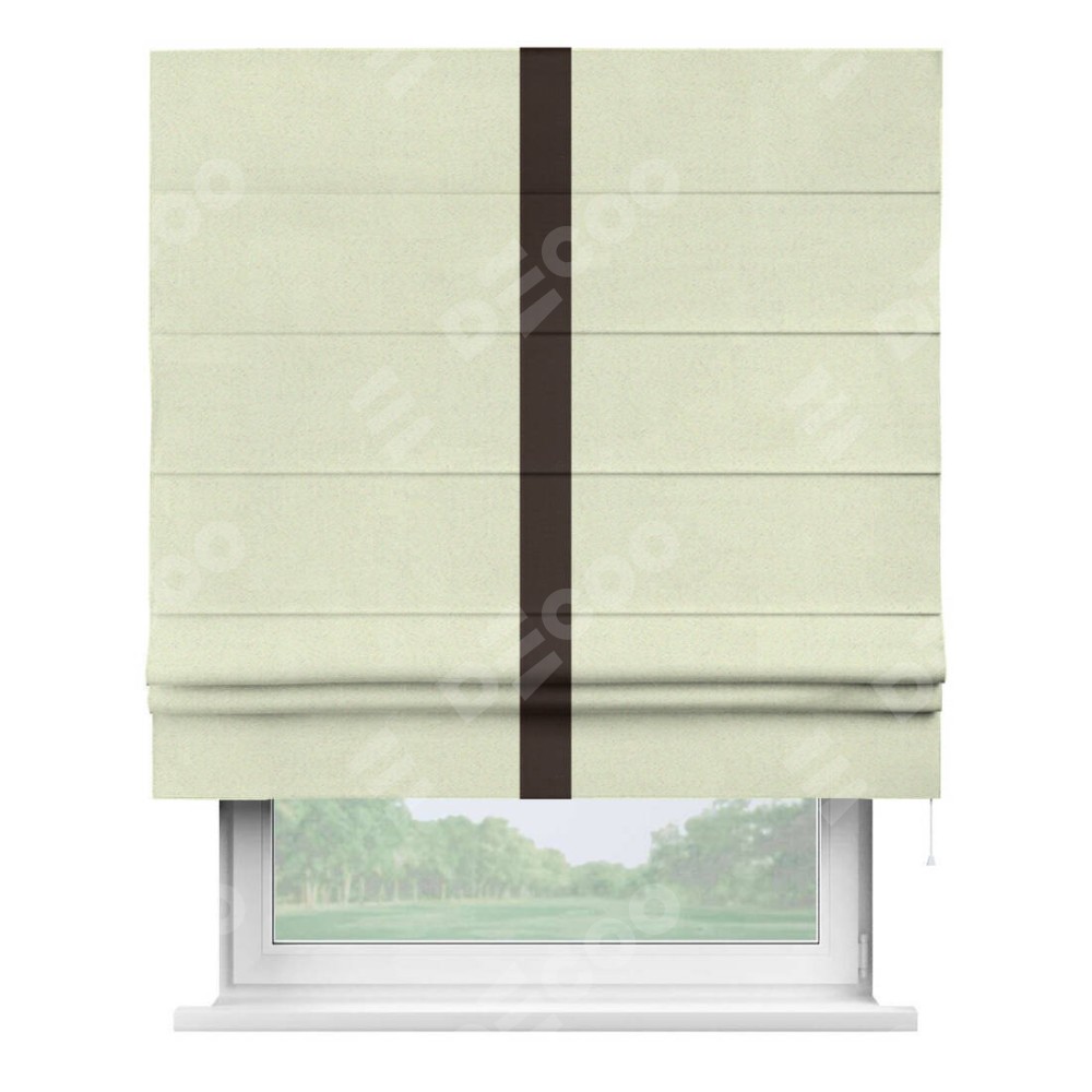 Римская штора производителя «Cortin», используется для проёма, пошита из ткани блэкаут однотонный сливочный, артикул ткани 6668−02. Отделка шторы кантом «Хайвей», ткань для канта используется из блэкаута однотонного разной расцветки на выбор. Имеет универсальный механизм и подходит для монтажа: на потолок, на стену и в нишу.