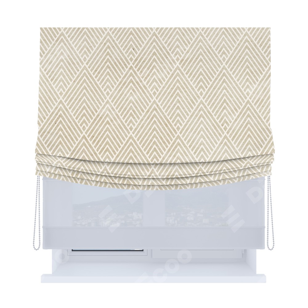 Основная ткань римской шторы не имеет горизонтальных вставок и нижнего отвеса. Это позволяет ткани произвольно драпироваться в свободные мягкие складки.