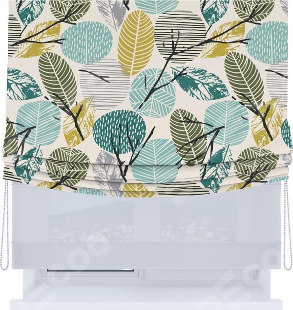 Римская штора «Кортин», день-ночь с мягкими складками, «Ботанический сад»