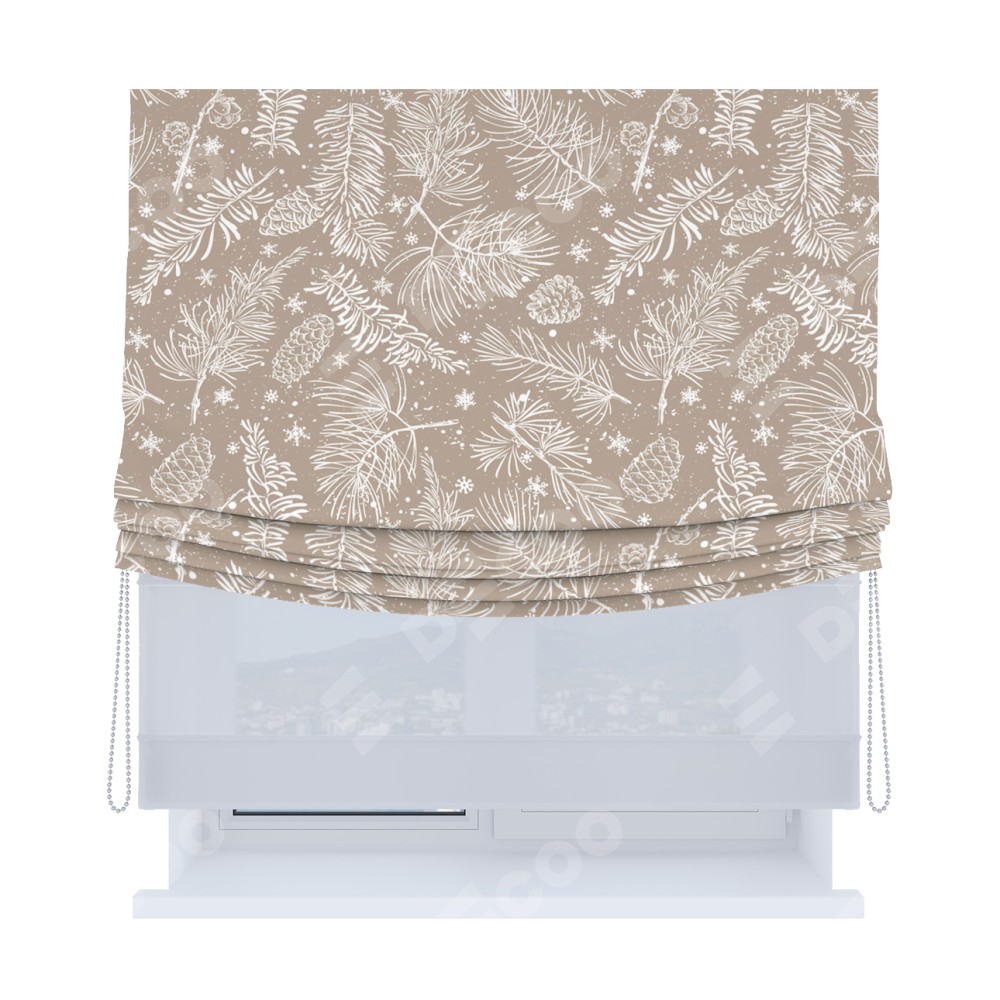 Римская штора день-ночь производителя «Cortin», используется для проёма, пошита из двух полотен, с лицевой блэкаут с нанесением сублимационной печати «Заснеженный лес», вторая ткань тюль (по стандарту комплектуется тюль белого цвета артикул V-01). Имеет универсальный механизм и подходит для монтажа: на потолок, на стену и в нишу. Удобное управление каждой шторой отдельно.