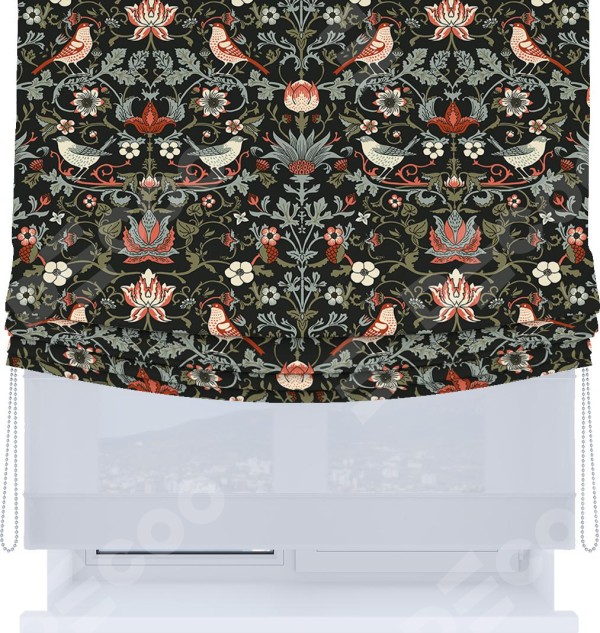 Римская штора «Кортин», день-ночь с мягкими складками, «Зачарованные птицы»