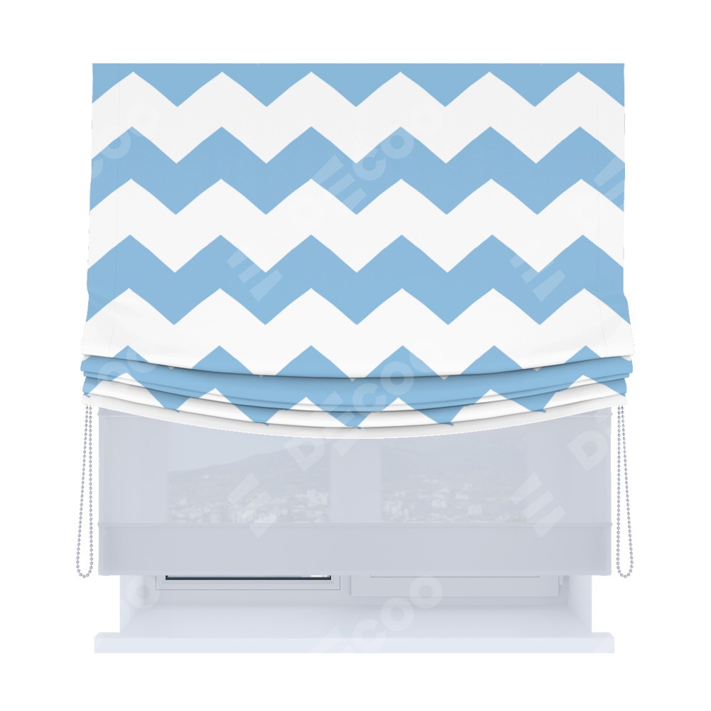 Римская штора день-ночь производителя «Cortin», используется для проёма, пошита из двух полотен, с лицевой блэкаут с нанесением сублимационной печати «Зигзаг крупный», вторая ткань тюль (по стандарту комплектуется тюль белого цвета артикул V-01). Имеет универсальный механизм и подходит для монтажа: на потолок, на стену и в нишу. Удобное управление каждой шторой отдельно.