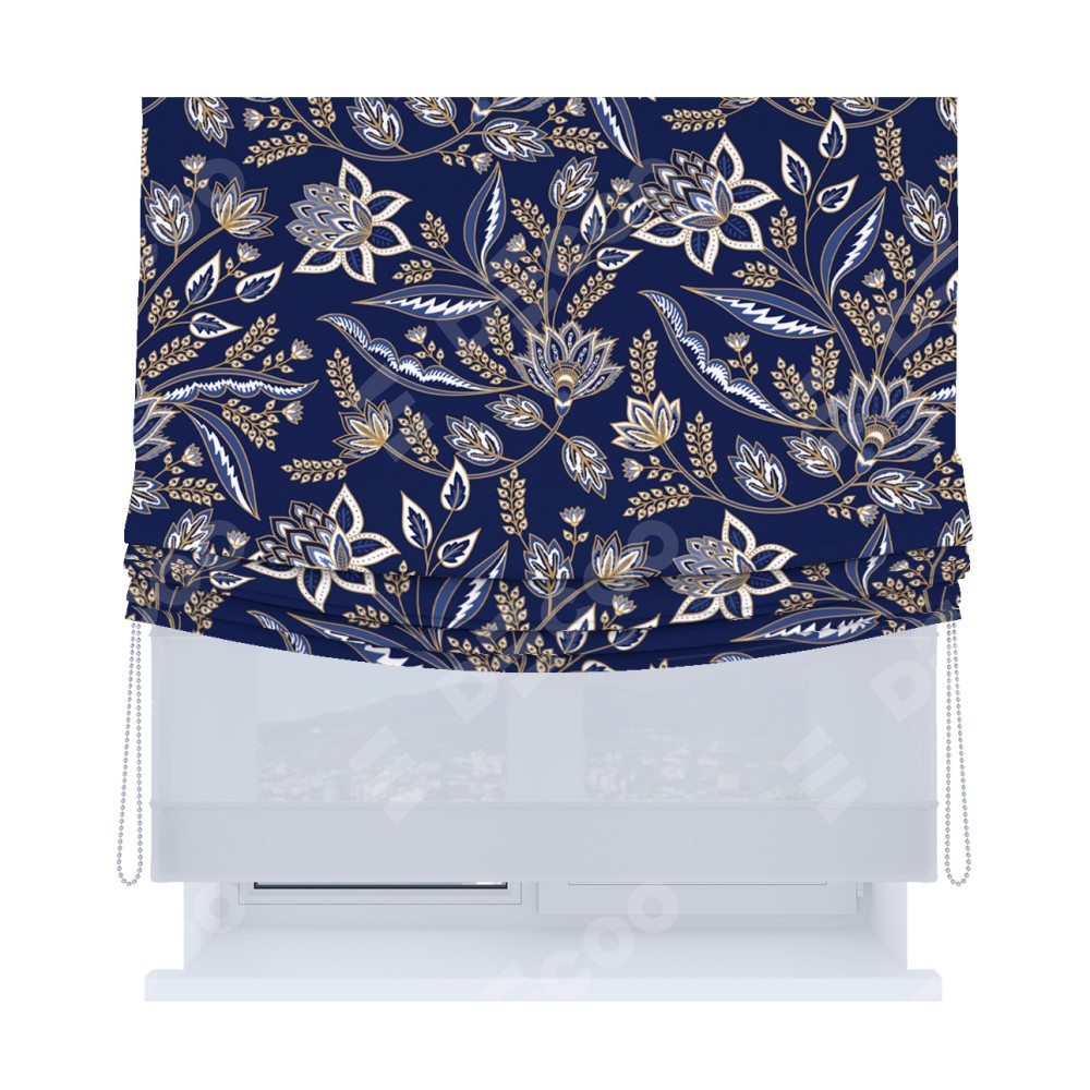 Римская штора «Кортин», день-ночь с мягкими складками, «Индиго батик»