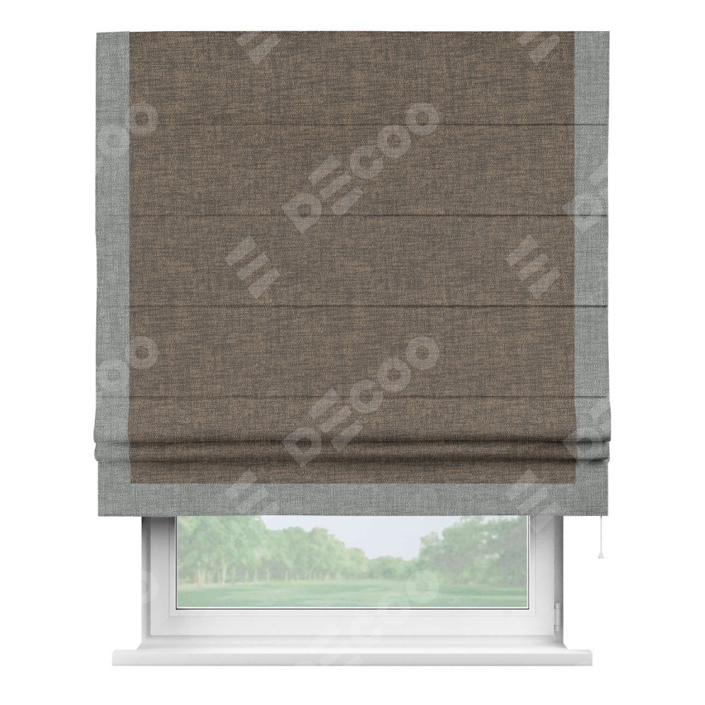 Римская штора «Кортин» с кантом Виктория, для проема, ткань рогожка димаут, коричневый