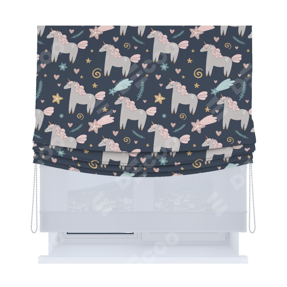 Римская штора «Кортин», день-ночь с мягкими складками, «Милые единороги»