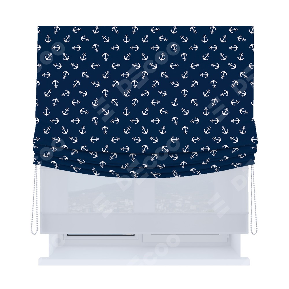Римская штора «Кортин», день-ночь с мягкими складками, «Морские якори»
