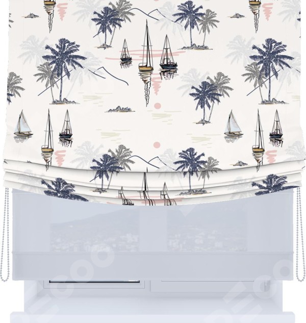 Римская штора «Кортин», день-ночь с мягкими складками, «Морское путешествие»