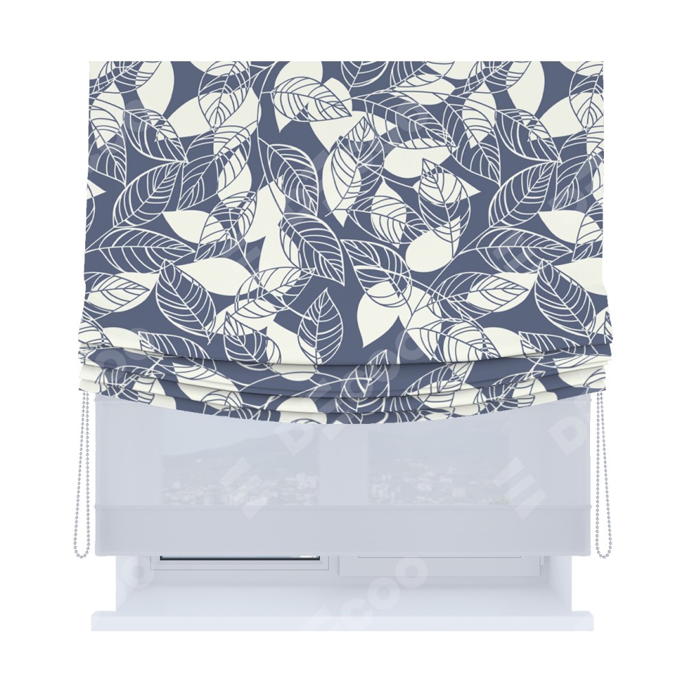 Римская штора «Кортин», день-ночь с мягкими складками, «Прозрачные листья»