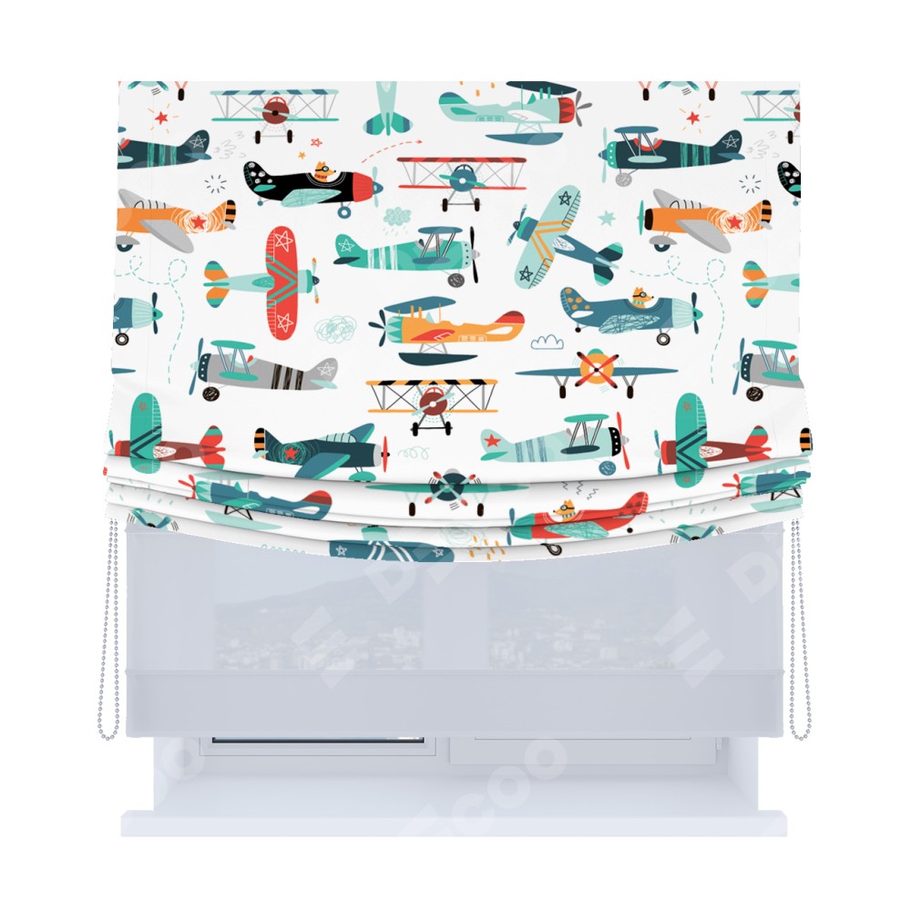 Римская штора «Кортин», день-ночь с мягкими складками, «Самолёты и пилоты»