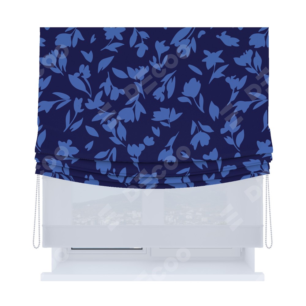 Римская штора «Кортин», день-ночь с мягкими складками, «Синие цветы»