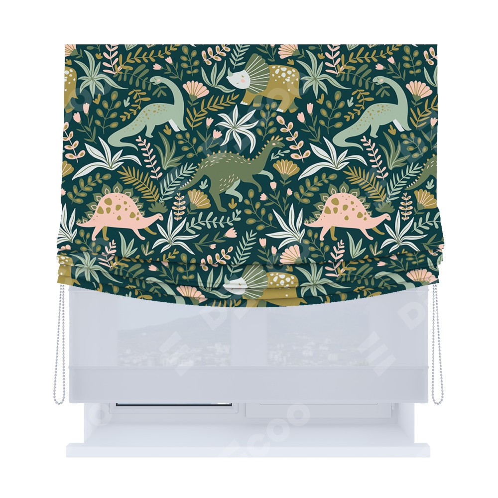 Римская штора «Кортин», день-ночь с мягкими складками, «Удивительный дино»