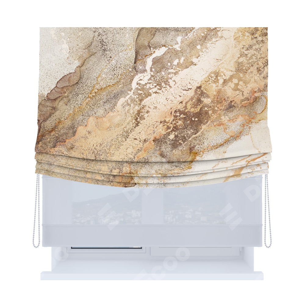 Римская штора «Кортин», день-ночь с мягкими складками, «Бежево-золотой мрамор»