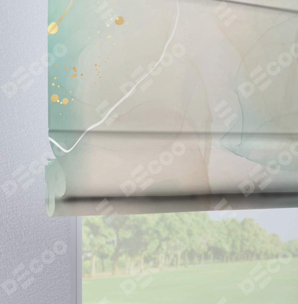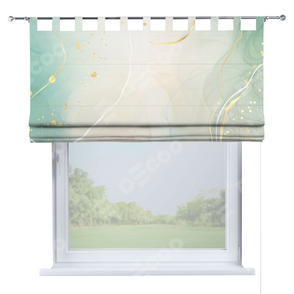 Римская штора производителя «Cortin», используется для проёма, пошита из ткани блэкаут с нанесением сублимационной печати «Изумрудно-серый мрамор». Данная модель пошита на петлях, комплектуется на выбор круглым карнизом и подходит для монтажа на стену. Римская штора на петлях имеет простую систему регулировки высоты, отличительным преимуществом данной модели является простой способ монтажа. Достаточно повесить ее на трубу и штора готова!