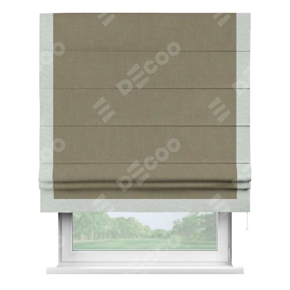 Римская штора производителя «Cortin», используется для проёма, пошита из ткани лён блэкаут бежевый, артикул 69435. Отделка шторы кантом «Виктория», ткань для канта используется из льна разной расцветки на выбор. Имеет универсальный механизм и подходит для монтажа: на потолок, на стену и в нишу.