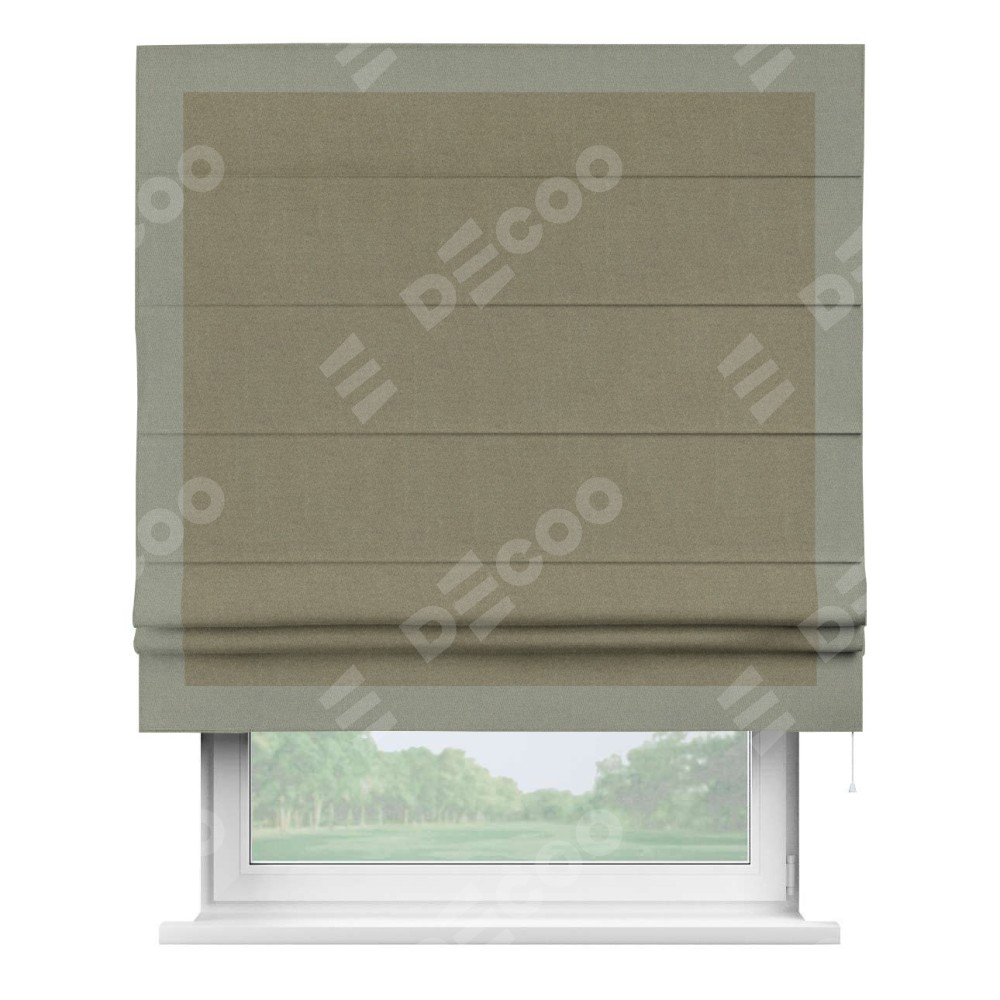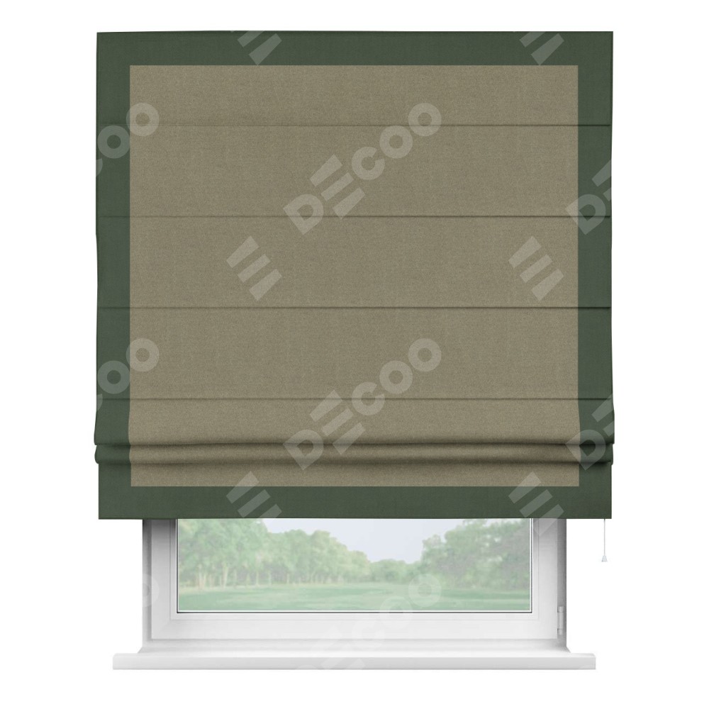 Римская штора производителя «Cortin», используется для проёма, пошита из ткани лён блэкаут бежевый, артикул 69435. Отделка шторы кантом «Чесс», ткань для канта используется из льна разной расцветки на выбор. Имеет универсальный механизм и подходит для монтажа: на потолок, на стену и в нишу.