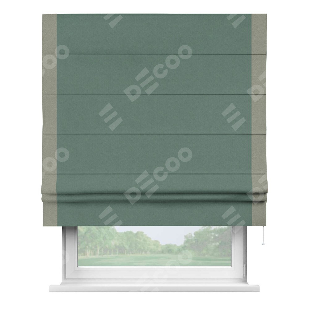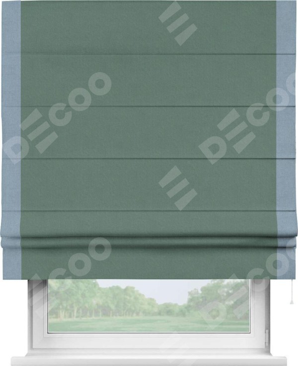 Римская штора «Кортин» с кантом Стрим Дуо, для проема, лён блэкаут бирюзовый