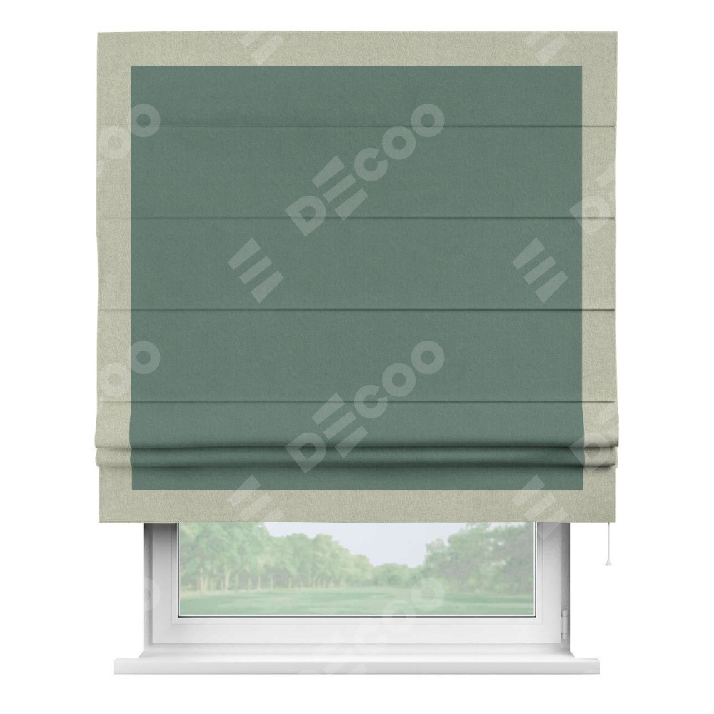 Римская штора «Кортин» с кантом Чесс, для проема, лён блэкаут бирюзовый