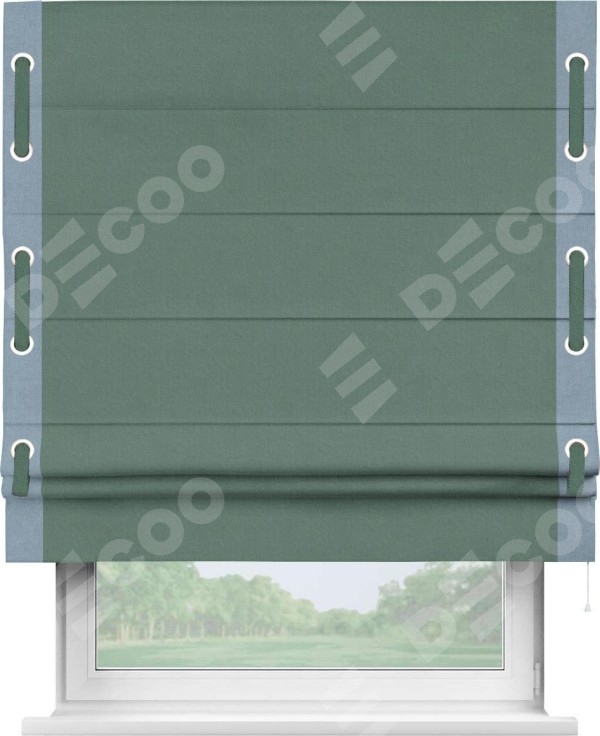 Римская штора «Кортин» с кантом Стрим Дуо (люверсы с пояском), для проема, лён блэкаут бирюзовый