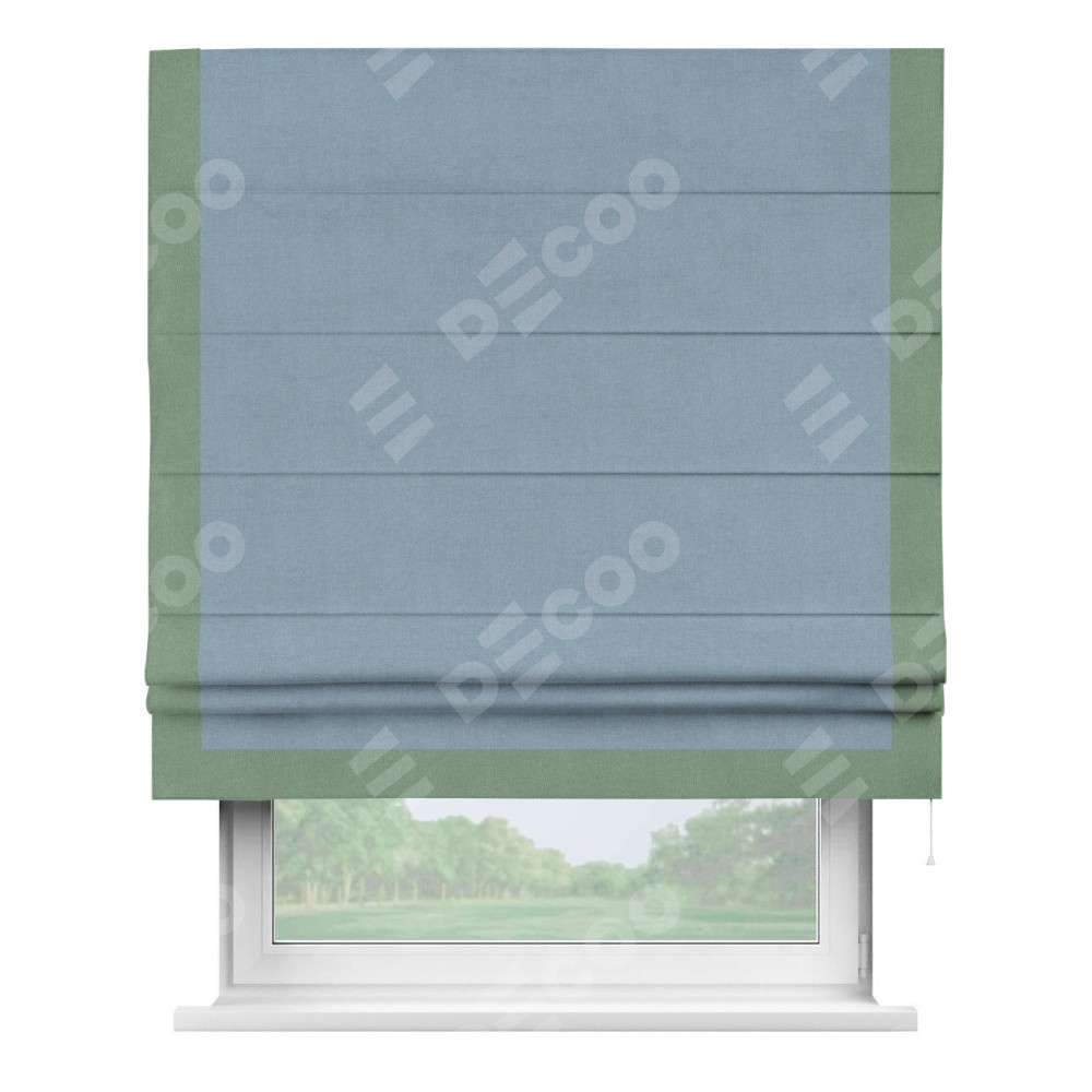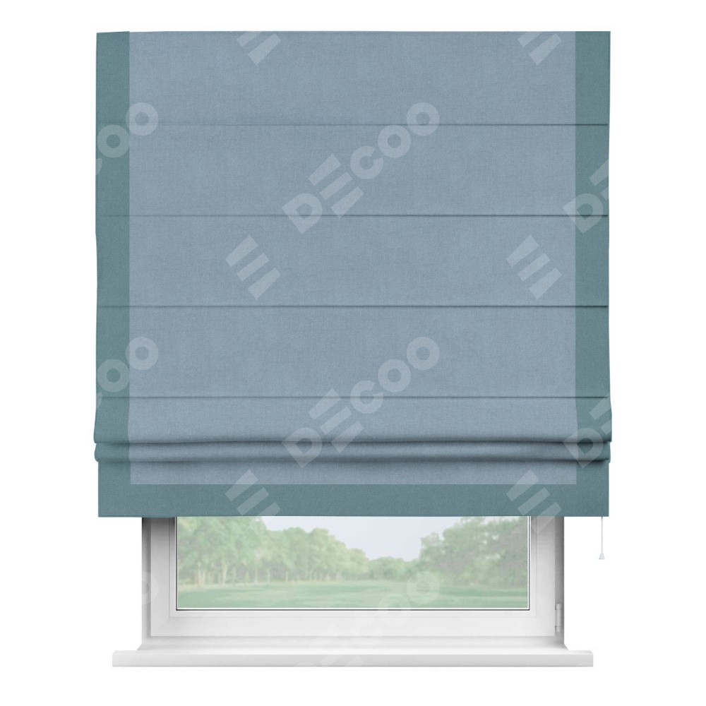 Римская штора «Кортин» с кантом Виктория, для проема, лён блэкаут голубой