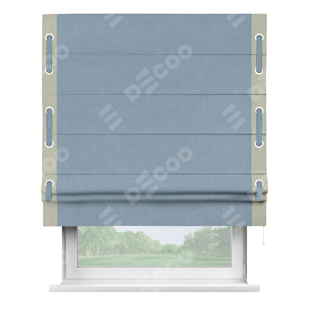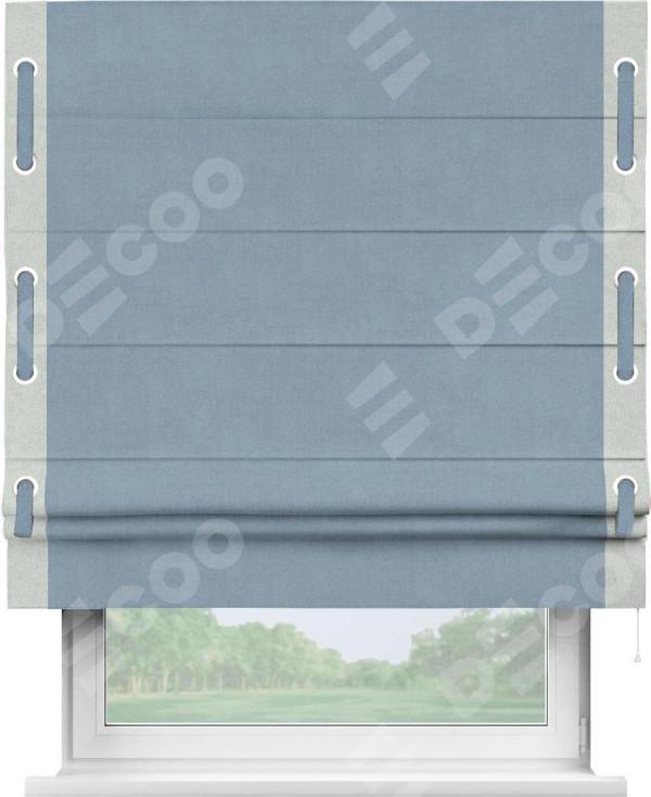 Римская штора «Кортин» с кантом Стрим Дуо (люверсы с пояском), для проема, лён блэкаут голубой
