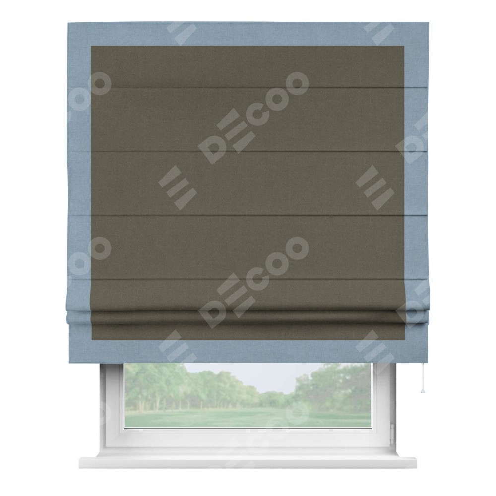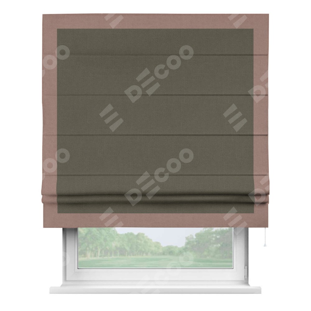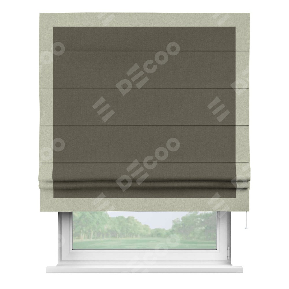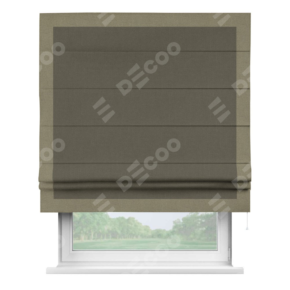 Римская штора «Кортин» с кантом Чесс, для проема, лён блэкаут коричневый