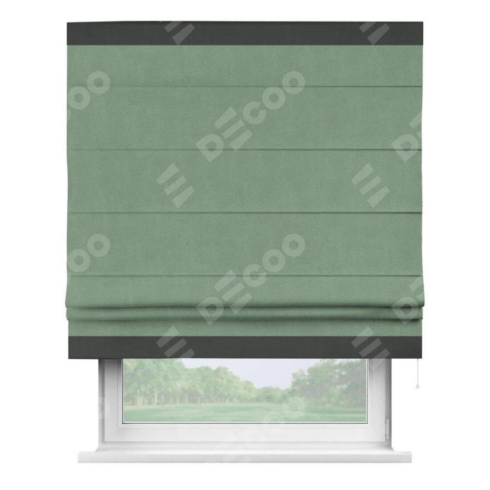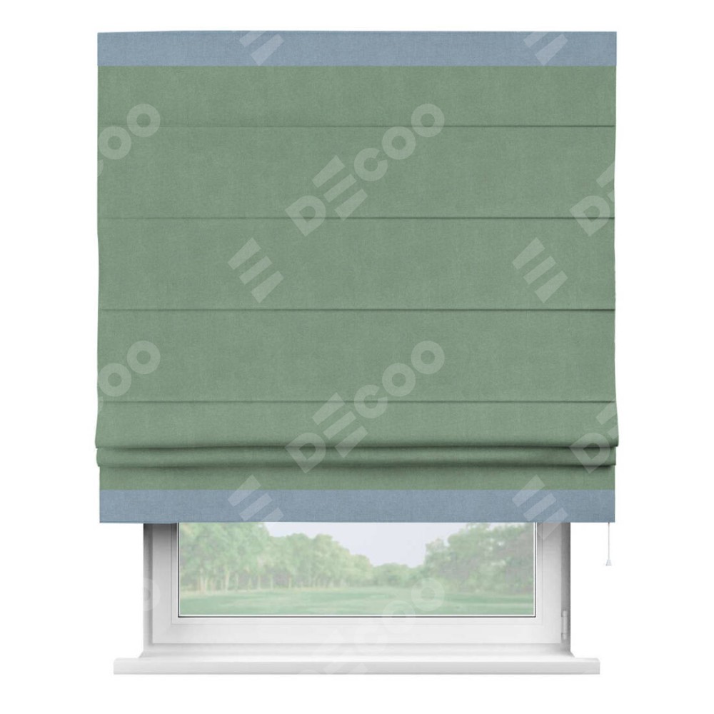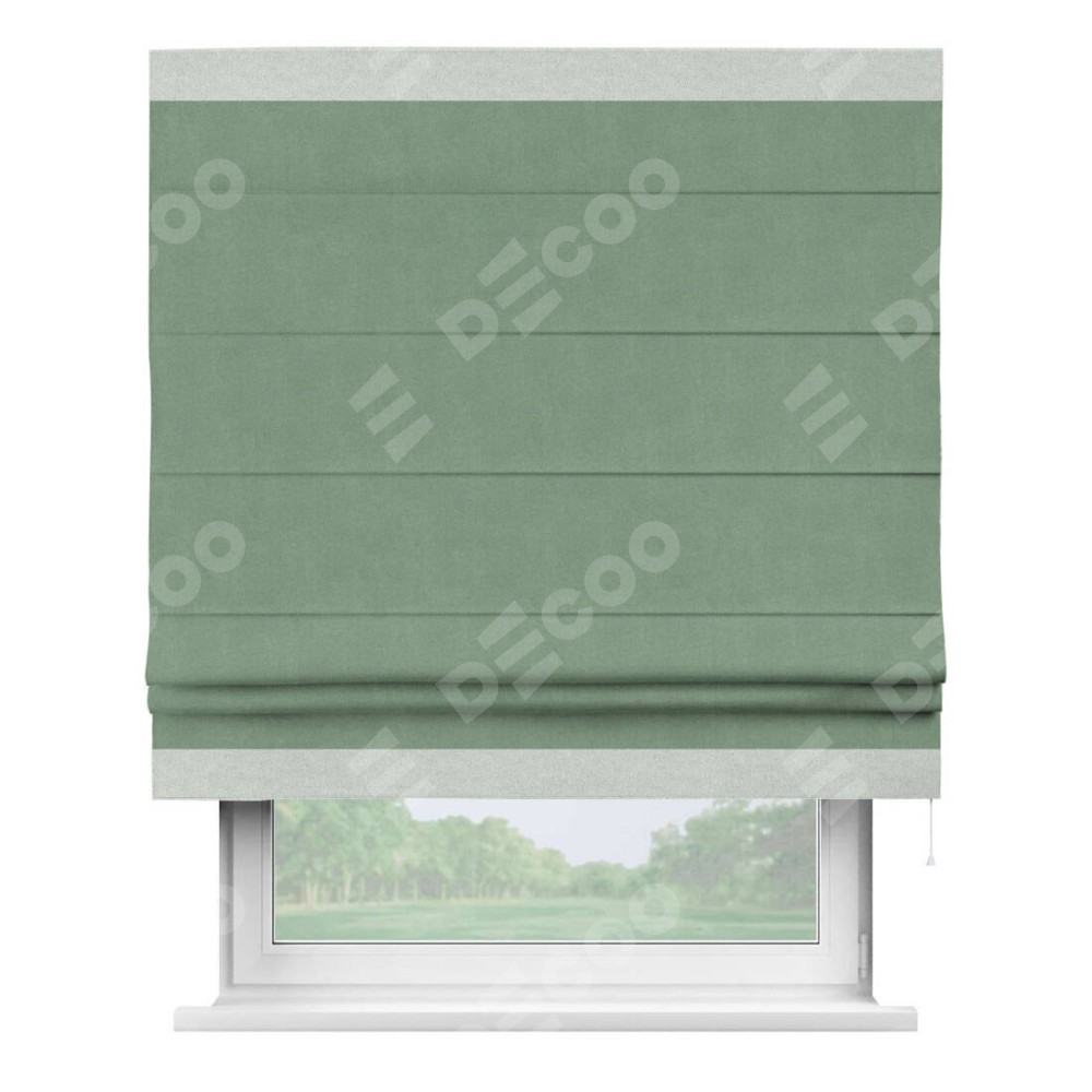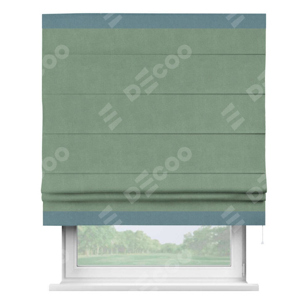 Римская штора «Кортин» с кантом Горизонт, для проема, лён блэкаут светло-бирюзовый