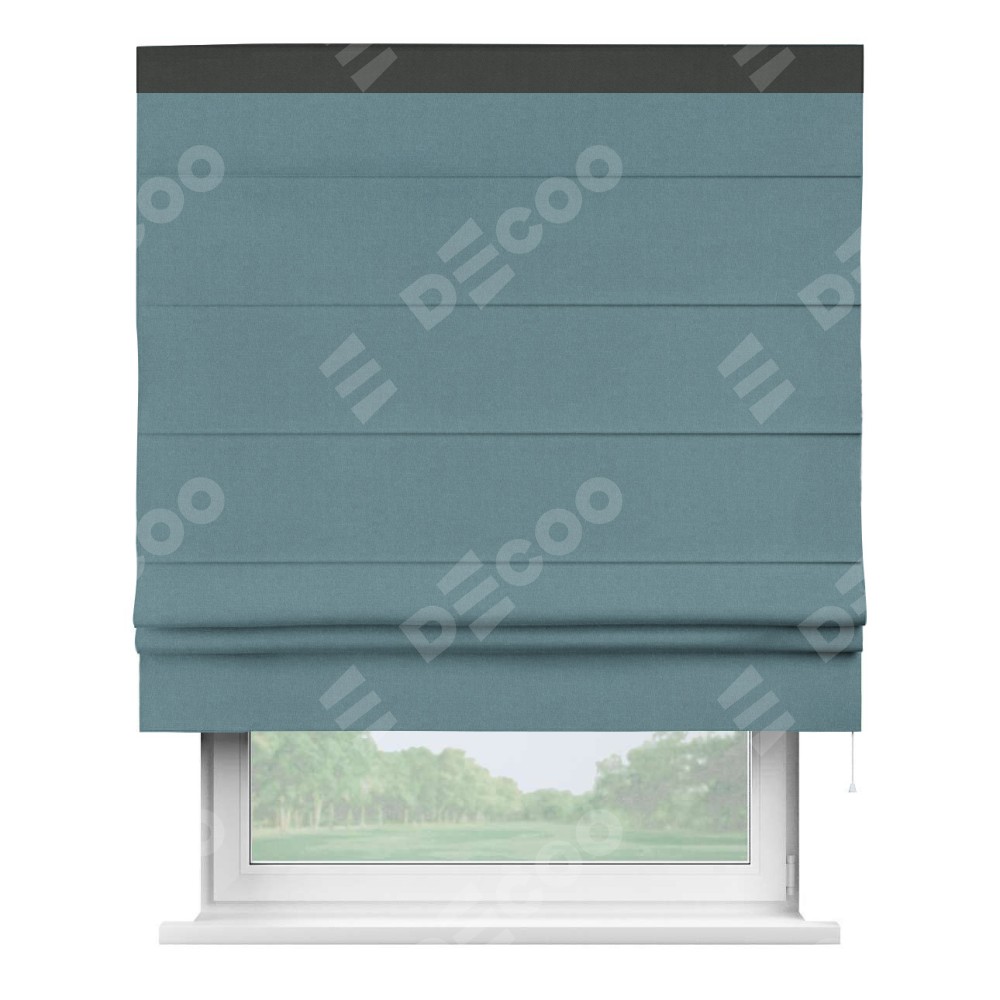 Римская штора «Кортин» с кантом Кинг, для проема, лён блэкаут синий