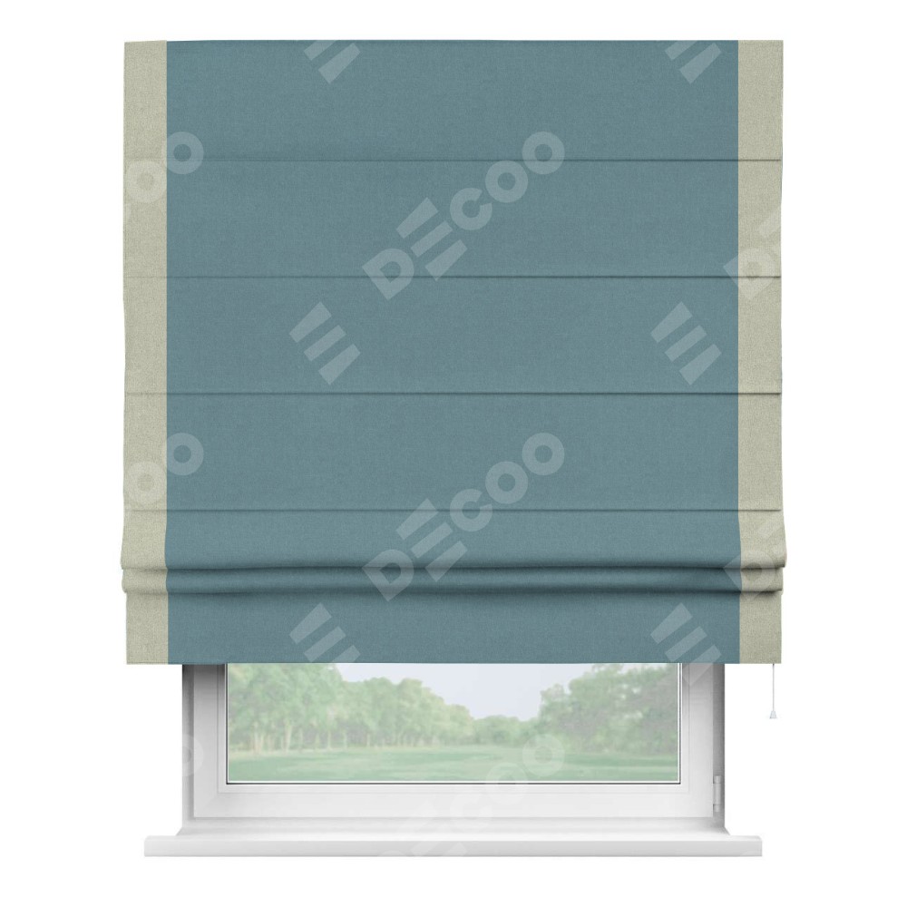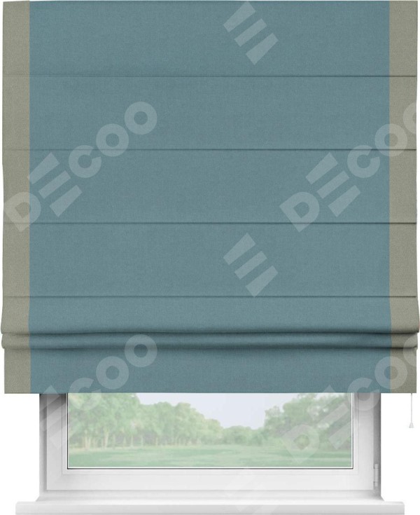 Римская штора «Кортин» с кантом Стрим Дуо, для проема, лён блэкаут синий
