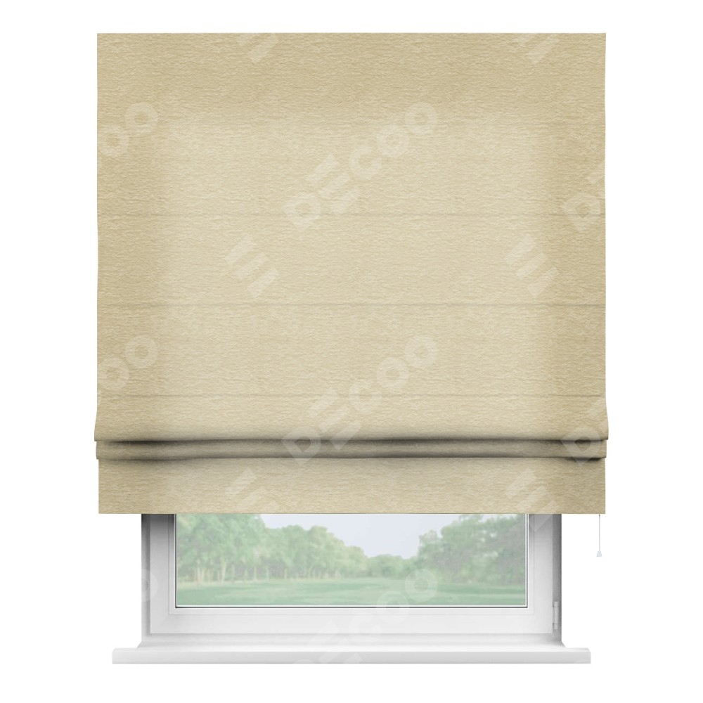 Римская штора производителя «Cortin», используется для проёма, пошита из ткани софт однотонный светло-бежевый, артикул ткани 54426. Имеет универсальный механизм и подходит для монтажа: на потолок, на стену и в нишу.