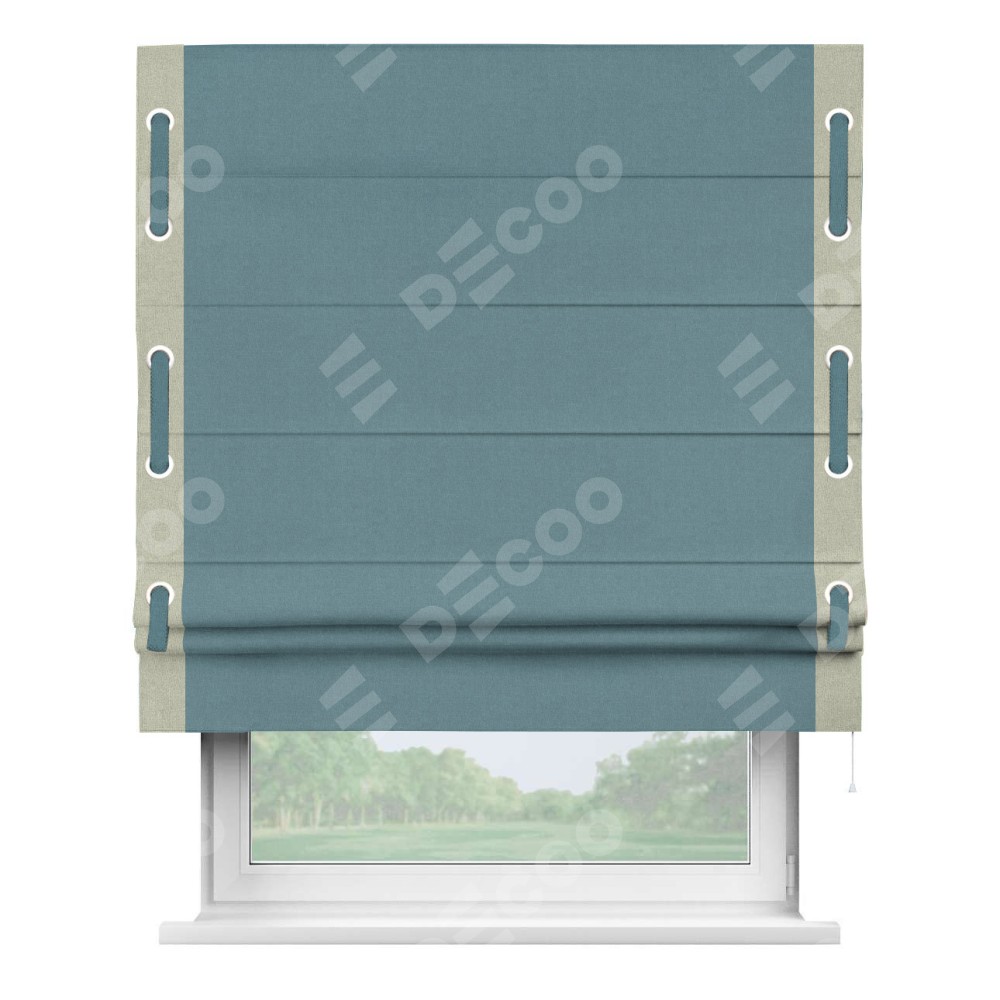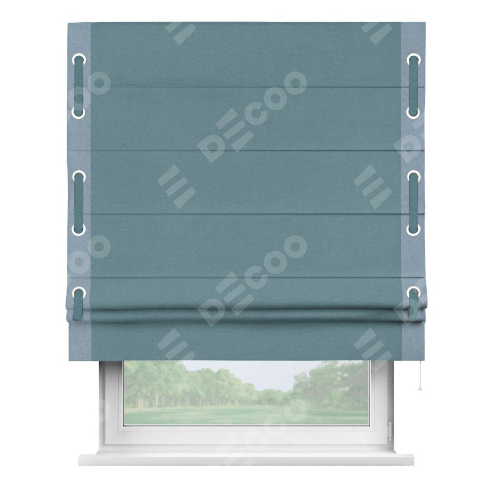 Римская штора «Кортин» с кантом Стрим Дуо (люверсы с пояском), для проема, лён блэкаут синий