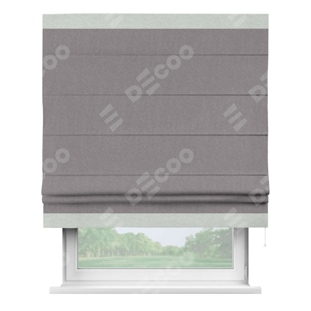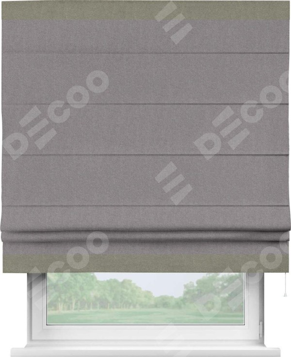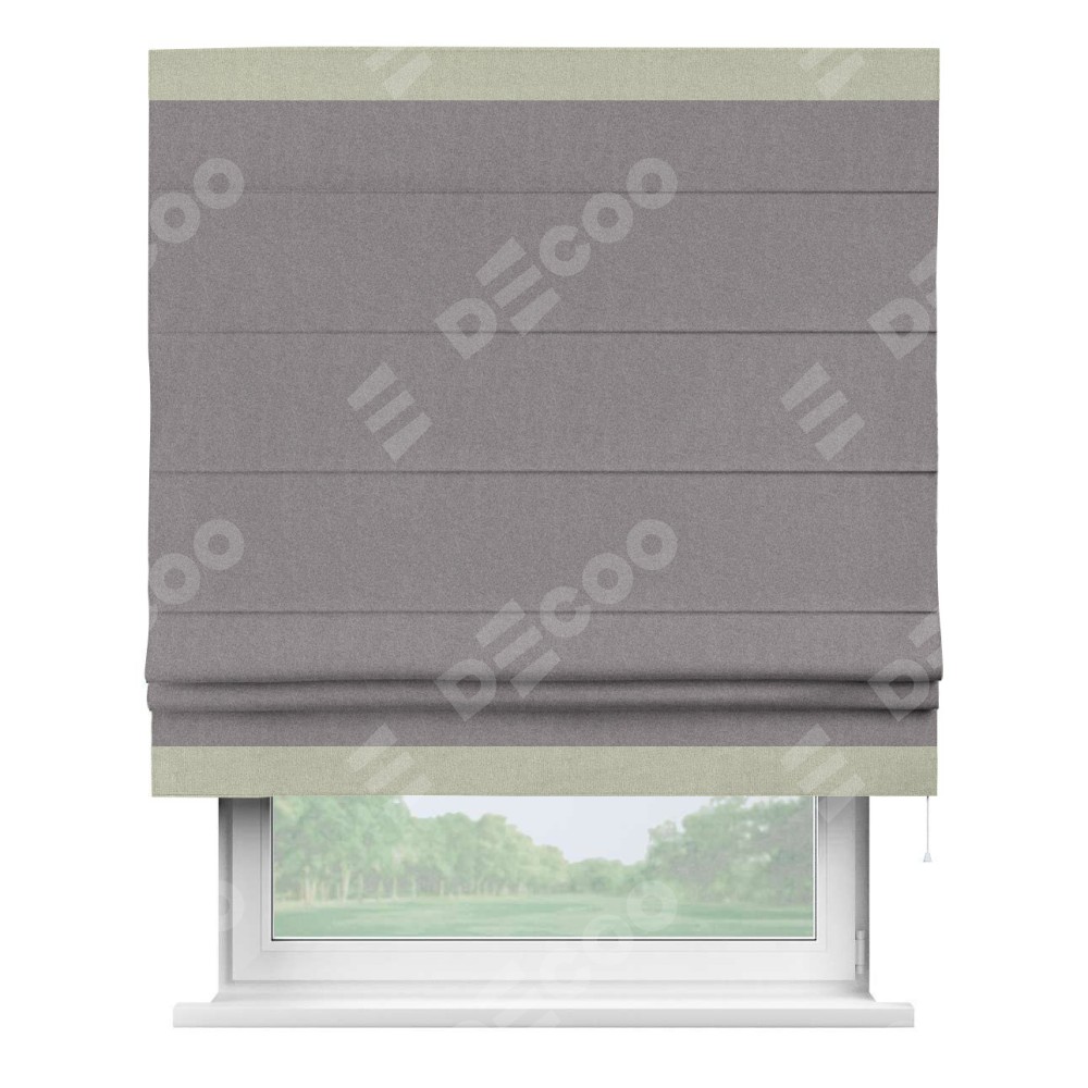 Римская штора производителя «Cortin», используется для проёма, пошита из ткани лён блэкаут сиреневый, артикул 69576. Отделка шторы кантом «Горизонт», ткань для канта используется из льна разной расцветки на выбор. Имеет универсальный механизм и подходит для монтажа: на потолок, на стену и в нишу.