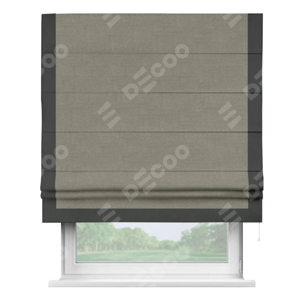Римская штора производителя «Cortin», используется для проёма, пошита из ткани лён блэкаут шампань, артикул 69449. Отделка шторы кантом «Виктория», ткань для канта используется из льна разной расцветки на выбор. Имеет универсальный механизм и подходит для монтажа: на потолок, на стену и в нишу.