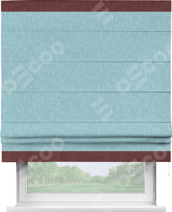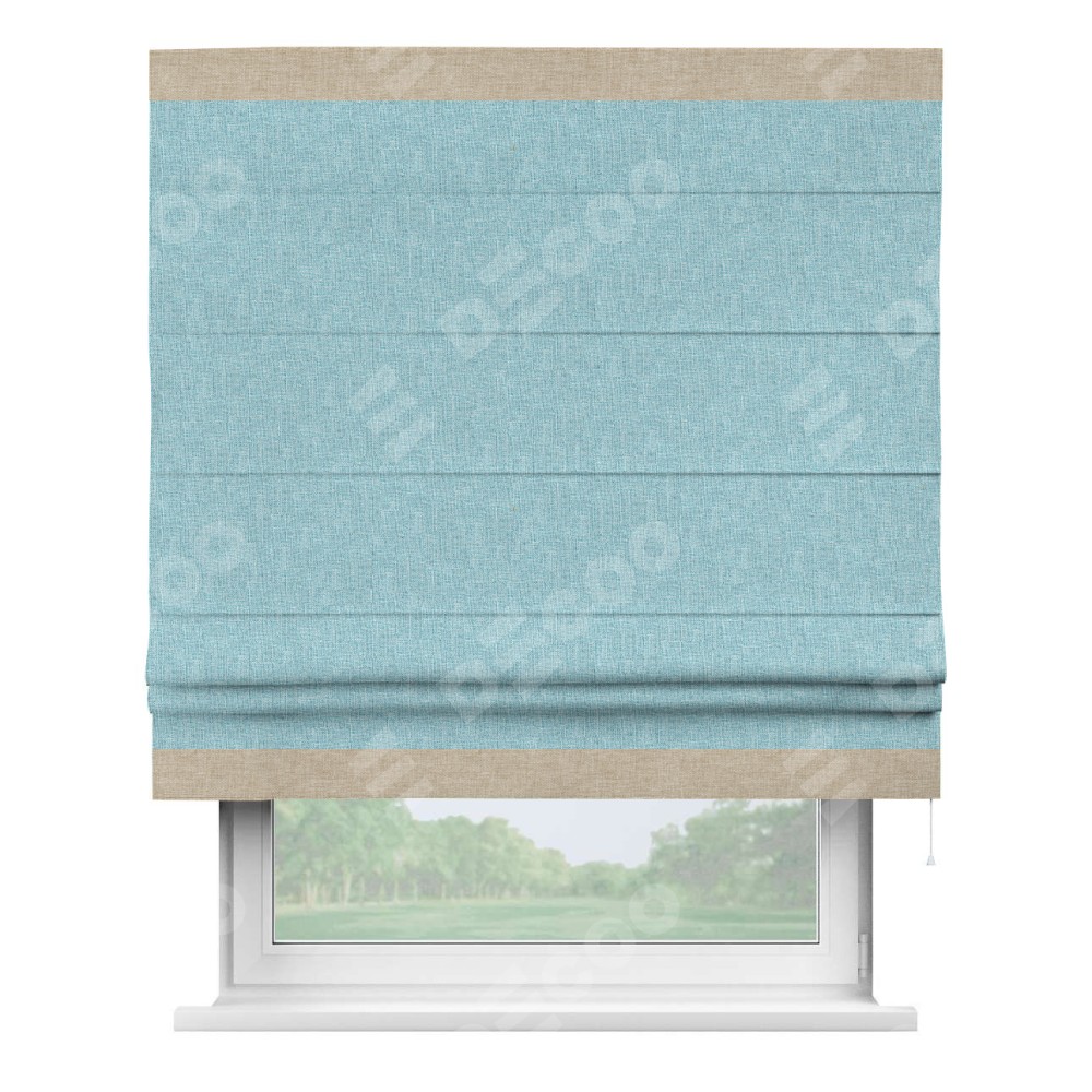 Римская штора «Кортин» с кантом Горизонт, для проема, ткань лён кашемир голубой