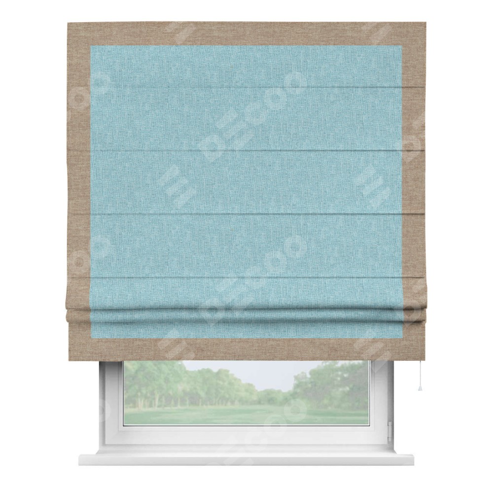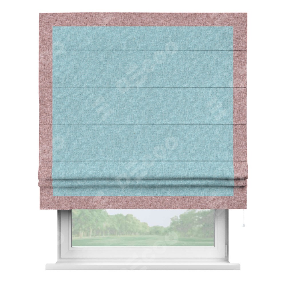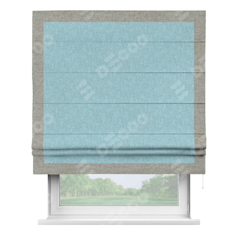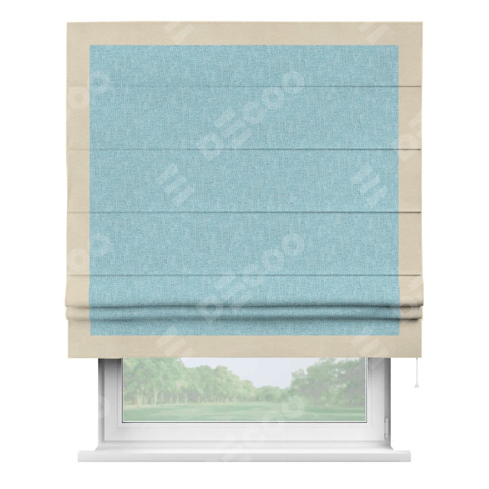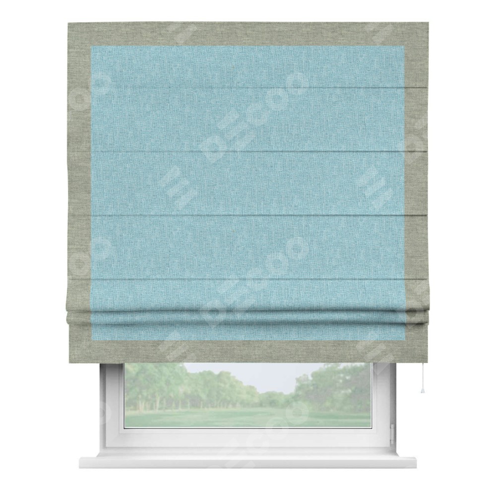 Римская штора «Кортин» с кантом Чесс, для проема, ткань лён кашемир голубой