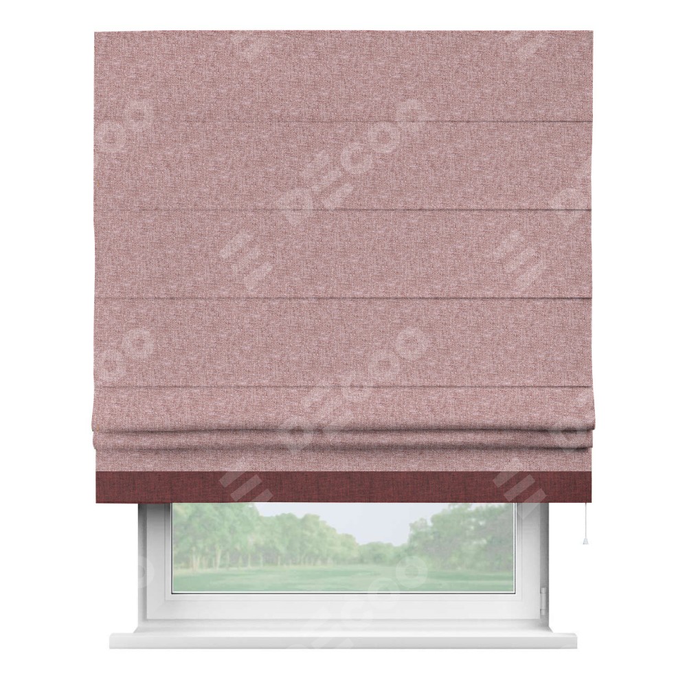 Римская штора производителя «Cortin», используется для проёма, пошита из ткани лён кашемир розовая пудра, артикул 21619. Отделка шторы кантом «Джестер», ткань для канта используется из льна разной расцветки на выбор. Имеет универсальный механизм и подходит для монтажа: на потолок, на стену и в нишу.