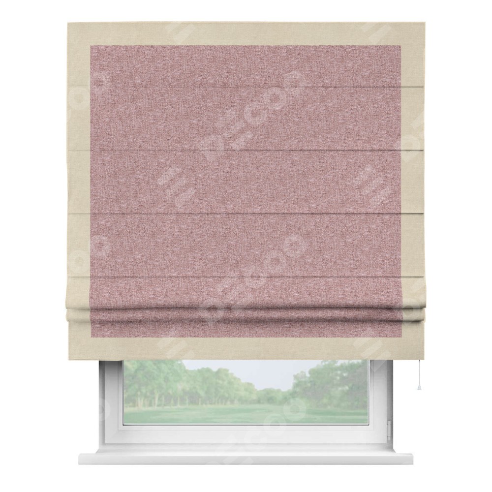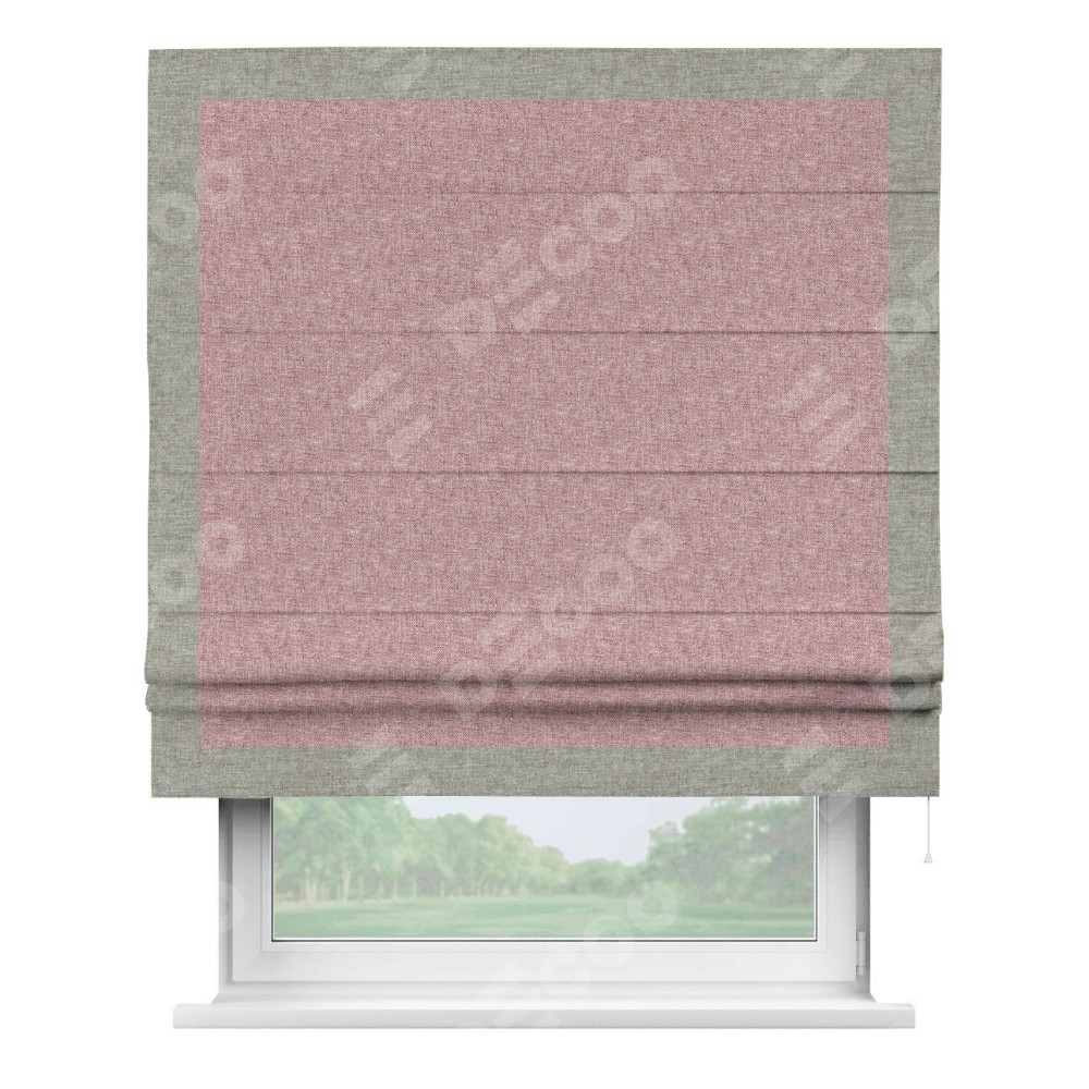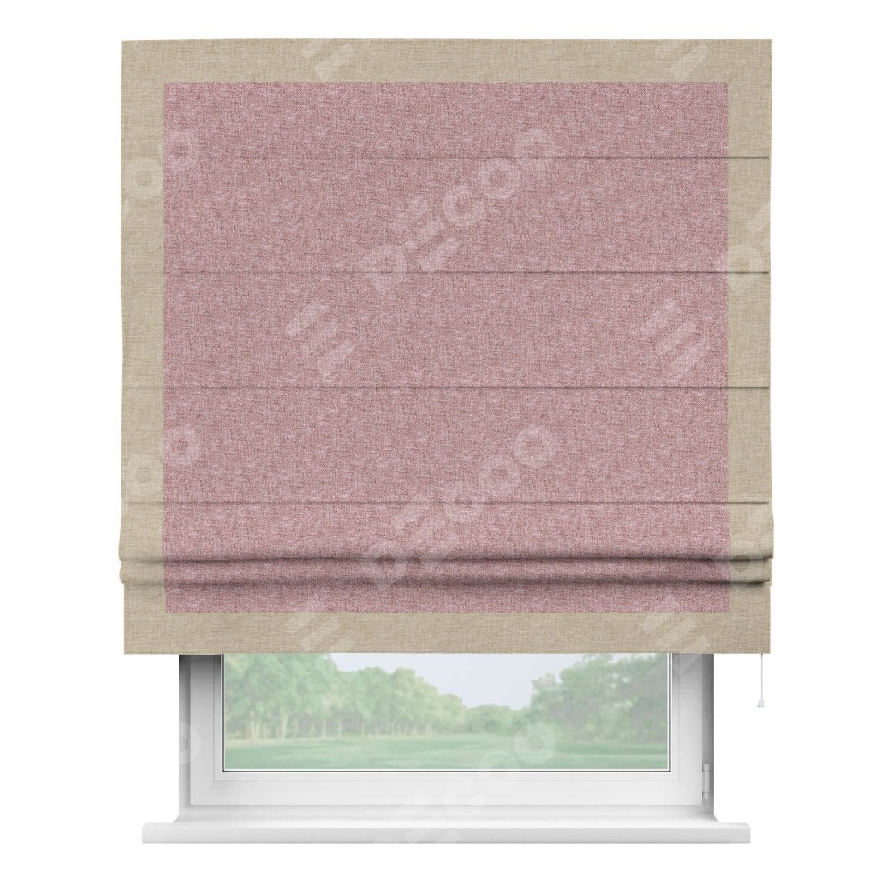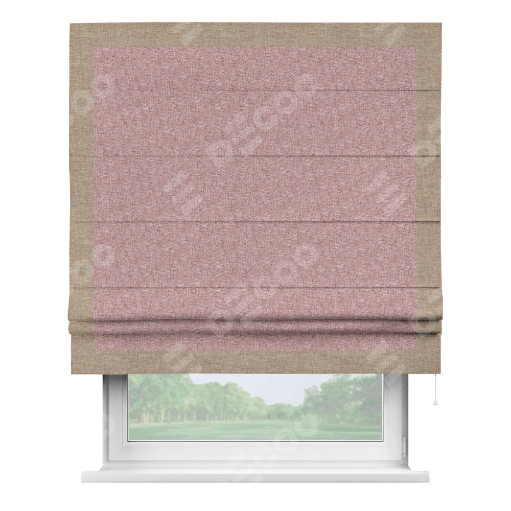 Римская штора «Кортин» с кантом Чесс, для проема, ткань лён кашемир розовая пудра