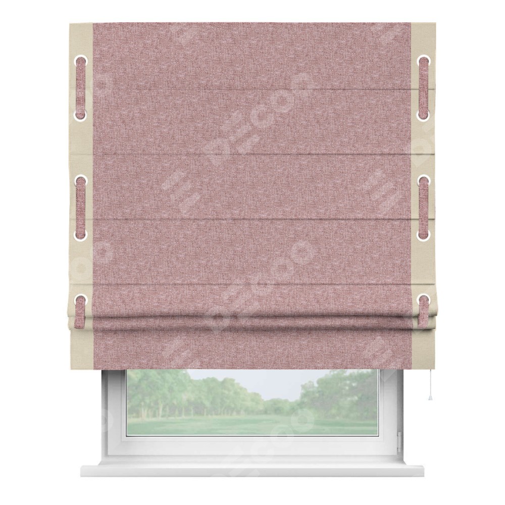 Римская штора «Кортин» с кантом Стрим Дуо (люверсы с пояском), для проема, ткань лён кашемир розовая пудра