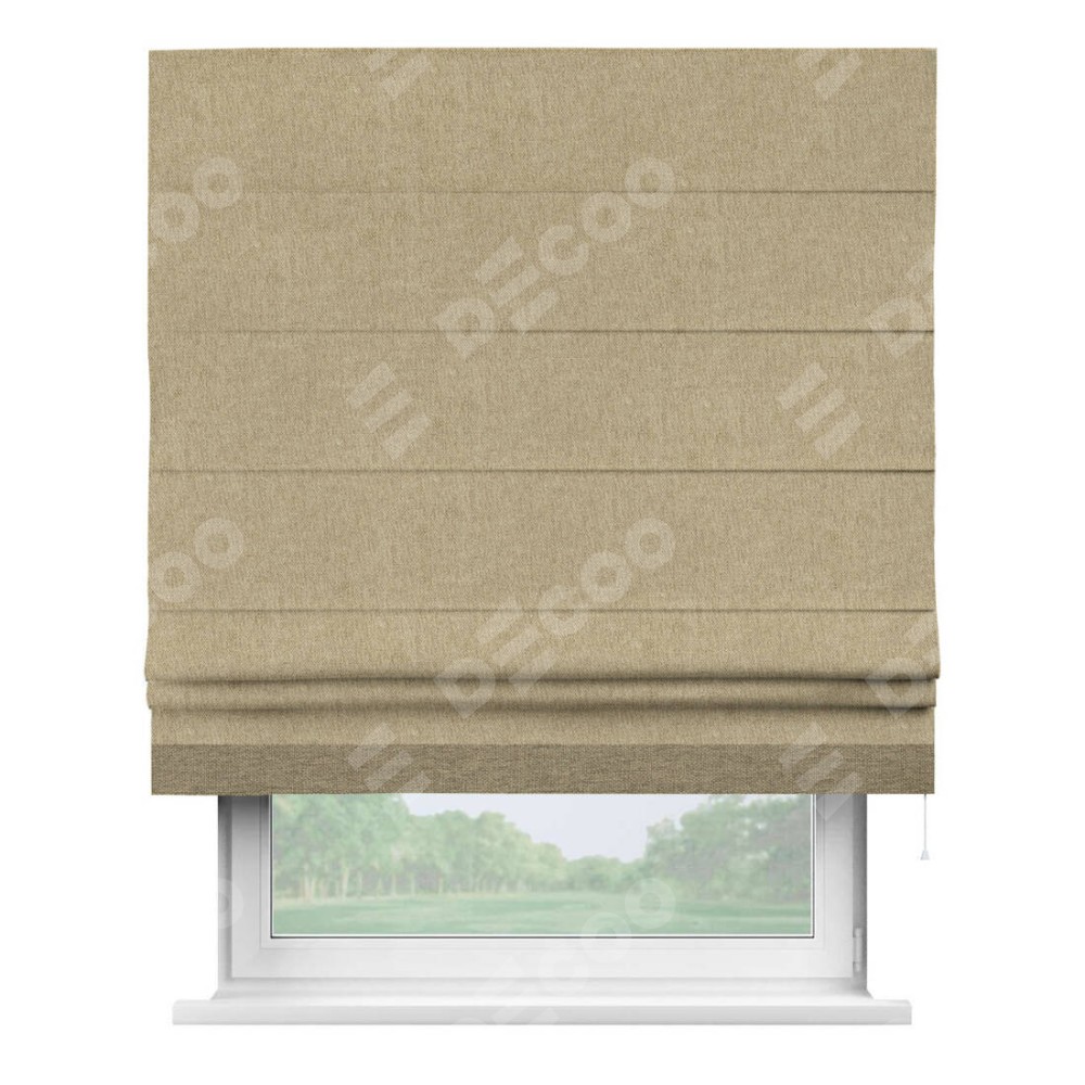 Римская штора производителя «Cortin», используется для проёма, пошита из ткани стиф димаут бежевый, артикул 18083. Отделка шторы кантом «Джестер», ткань для канта используется из стифа разной расцветки на выбор. Имеет универсальный механизм и подходит для монтажа: на потолок, на стену и в нишу.