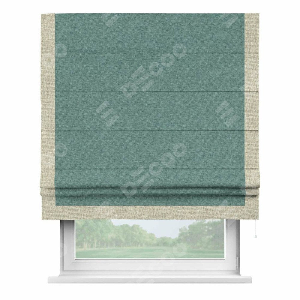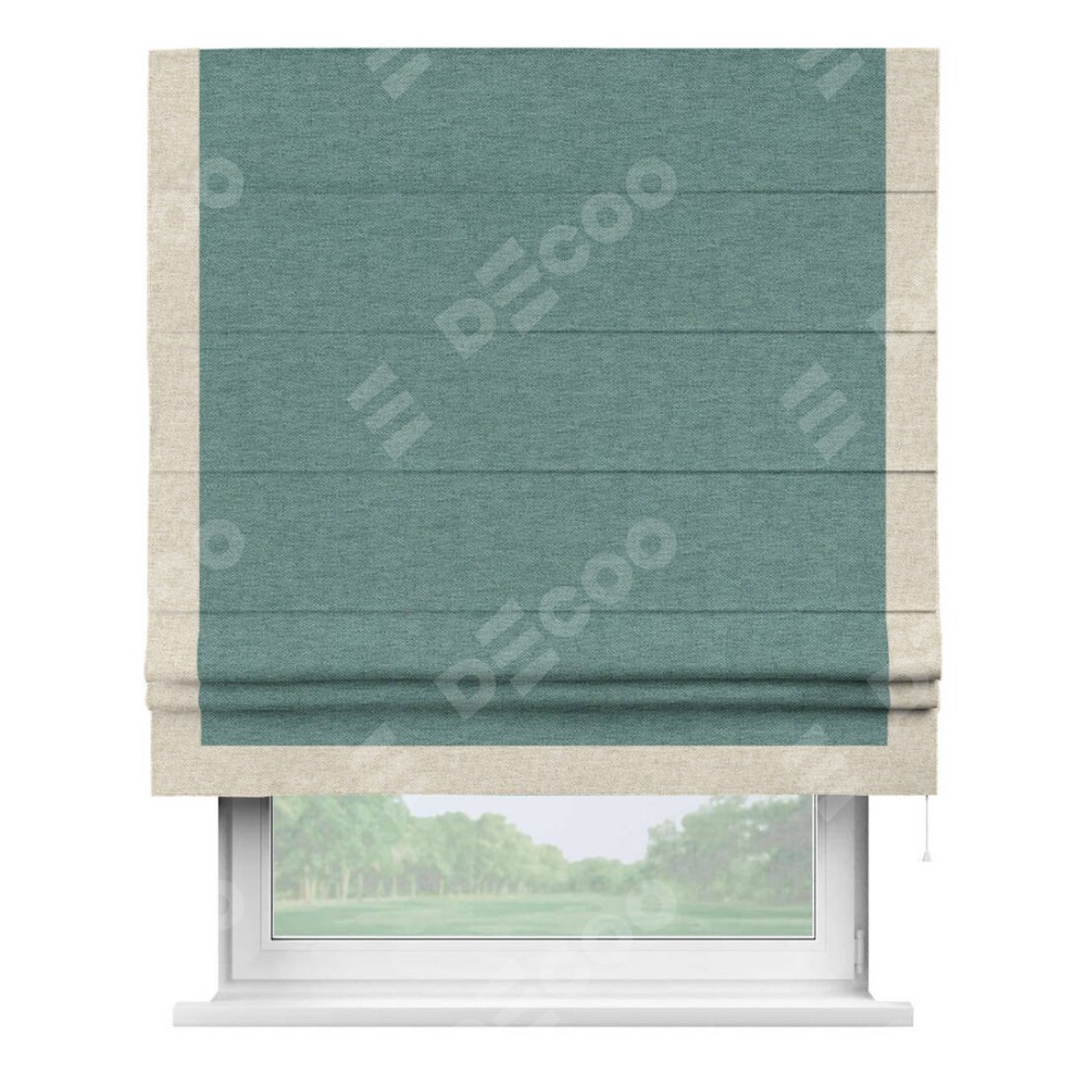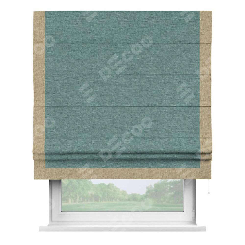 Римская штора «Кортин» с кантом Виктория, для проема, ткань стиф димаут бирюзовый