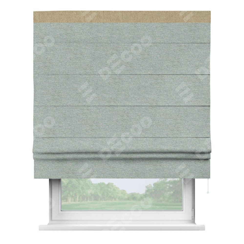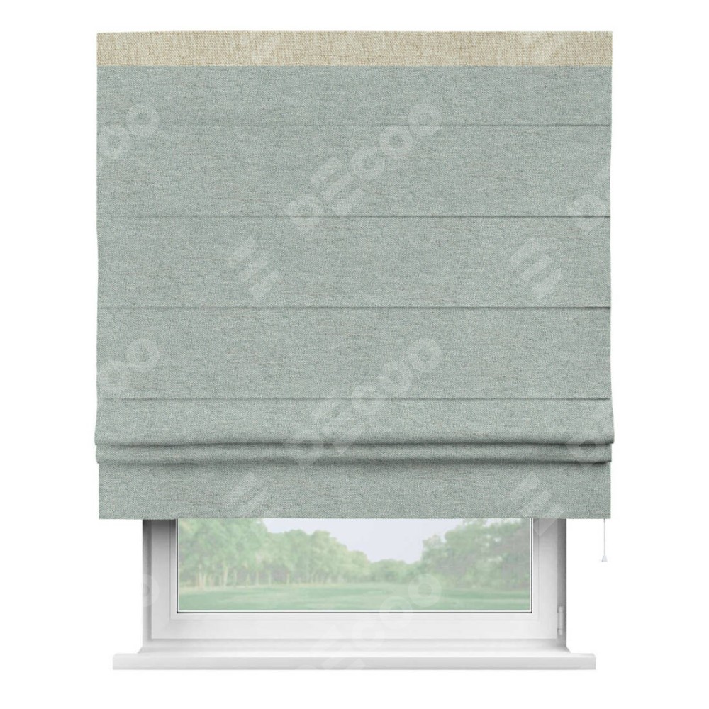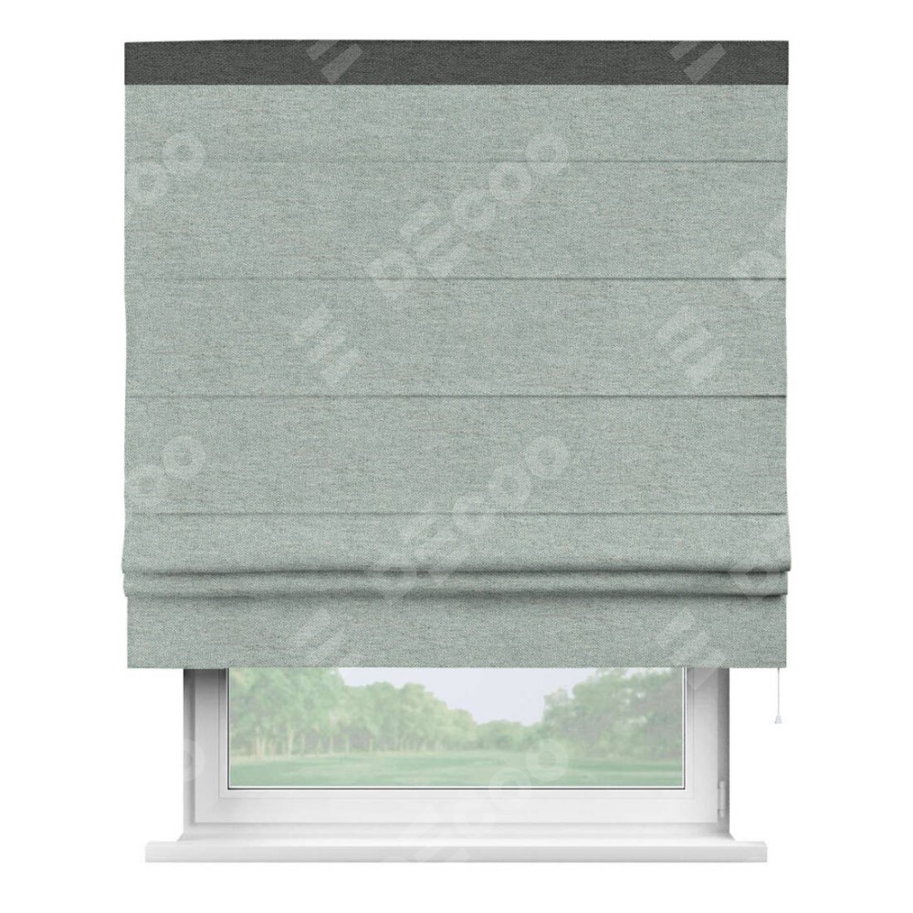Римская штора производителя «Cortin», используется для проёма, пошита из ткани стиф димаут светло-серый, артикул 44025. Отделка шторы кантом «Кинг», ткань для канта используется из стифа разной расцветки на выбор. Имеет универсальный механизм и подходит для монтажа: на потолок, на стену и в нишу.